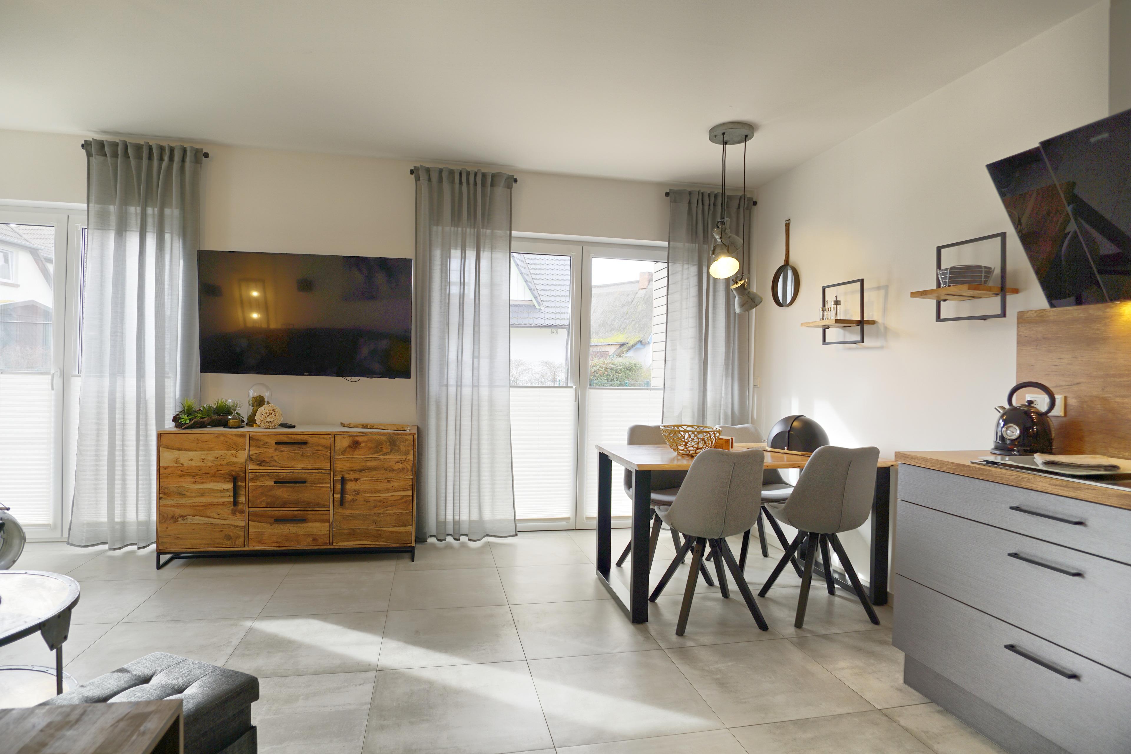 Die komfortable, moderne Suite Kormoran im Haus Seevogel wurde Ende 2019 fertiggestellt und lädt zu gemütlichen Abenden ein. Die voll ausgestattete Küche mit Geschirrspüler, Kühlschrank mit