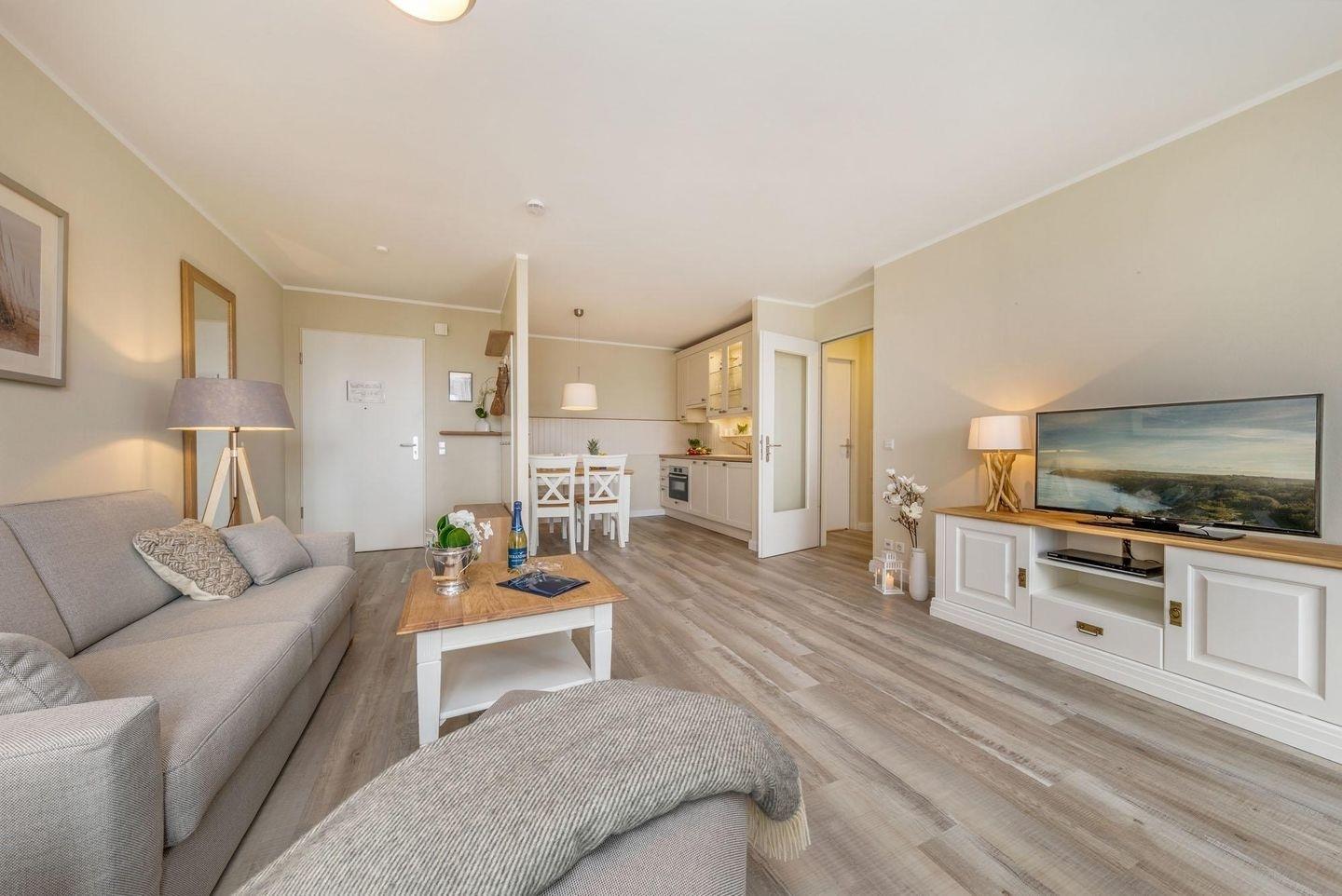 Traumhafte, luxuriöse Ferienwohnung in Zingst! Genießen Sie Ihren Urlaub auf 54 m² mit ausreichend Platz und einem tollen Ausblick auf die Ostsee. Genießen Sie hier gemütliche Sonnenuntergänge auf dem schönen Balkon.