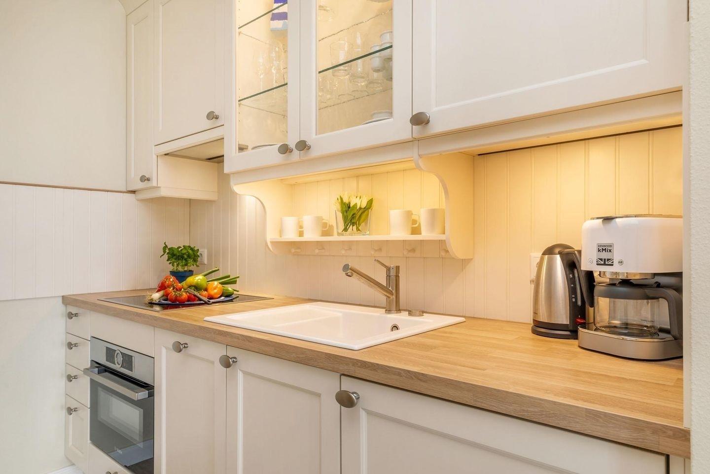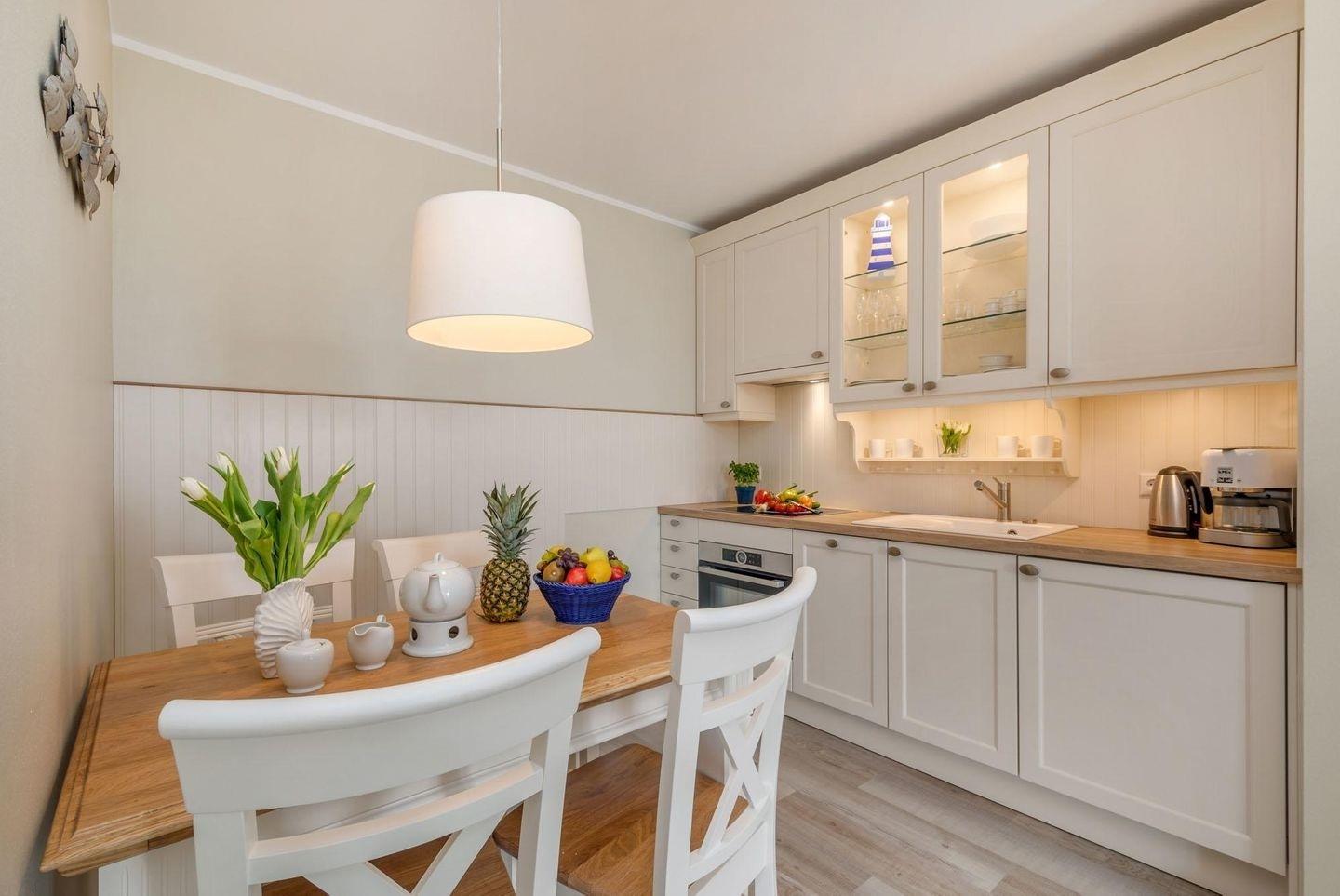 Die hochwertig ausgestattete Küche mit allen Annehmlichkeiten und schönem Geschirr macht selbst das Essen kochen zu einem Genuss. Als Alternative sind Sie fußläufig in 3 Minuten in der Promeniermeile und haben dort vielfältige Auswahl an Gastronomie.