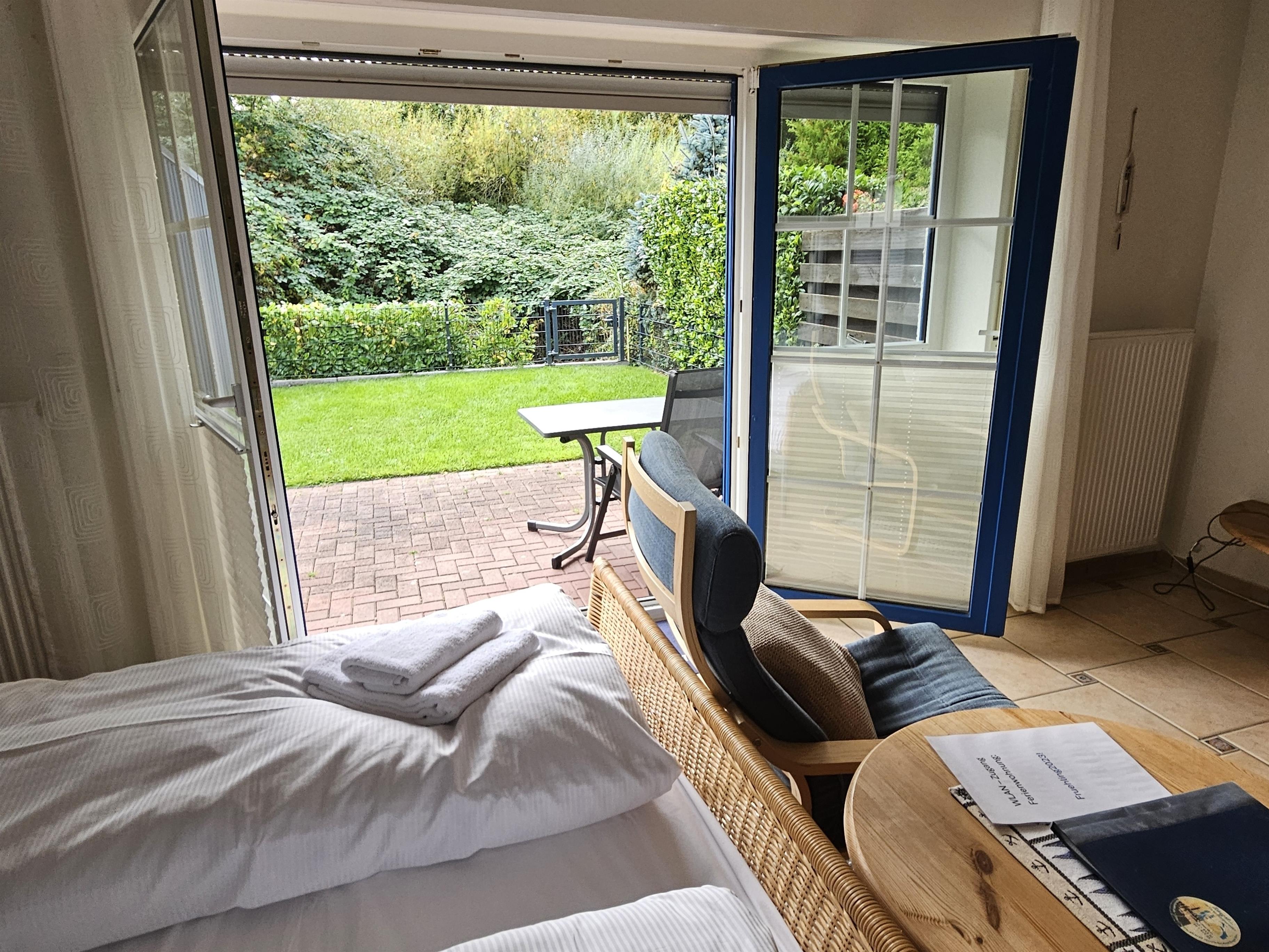 Richtige Urlaubsstimmung kommt in dem schönen Garten der Ferienwohnung auf.