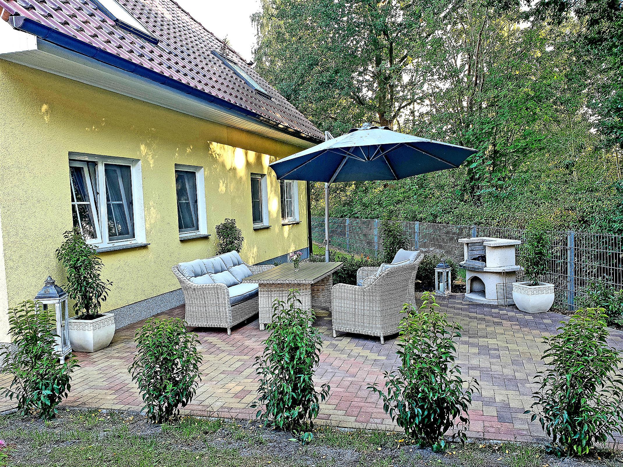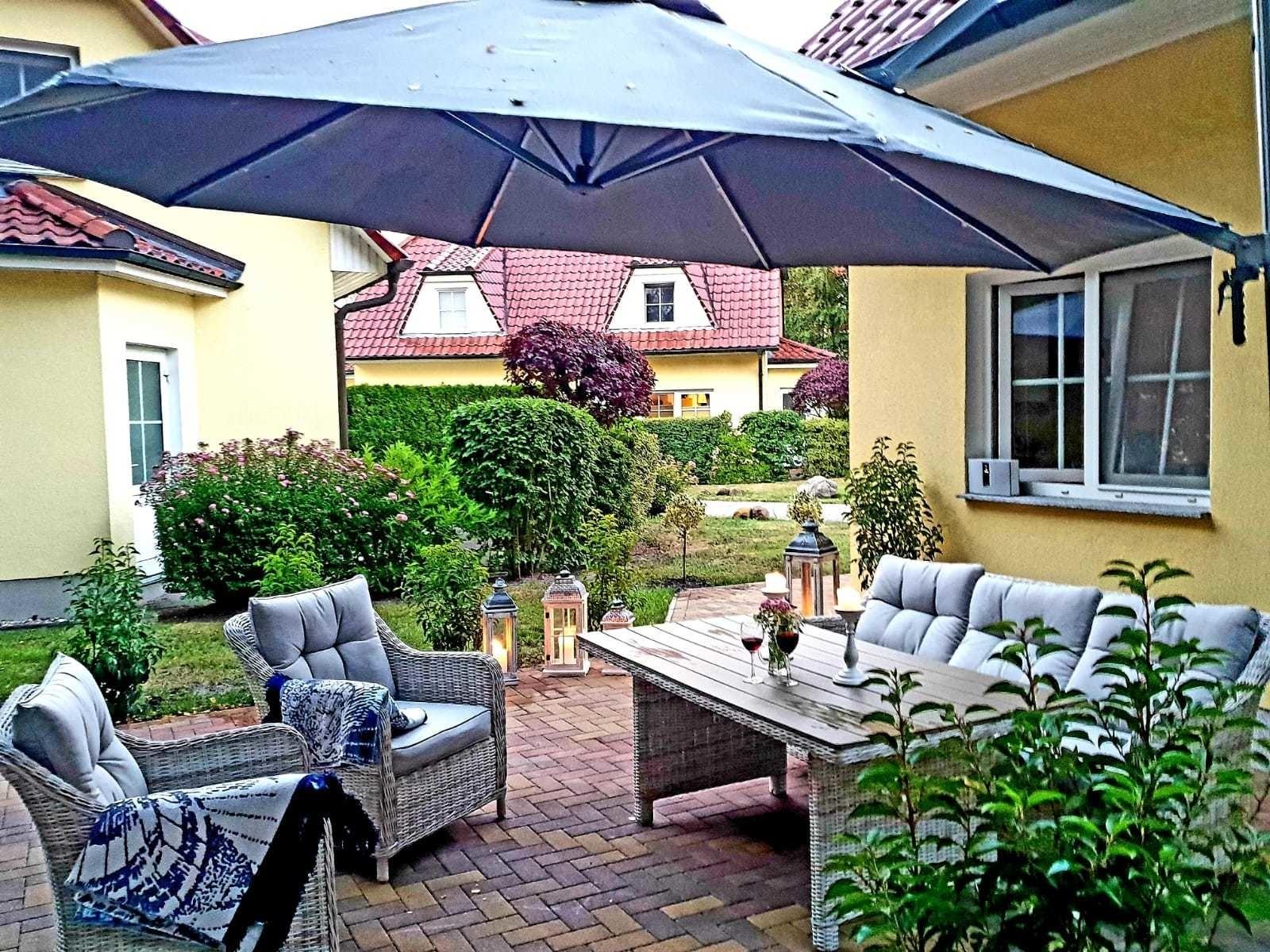 Richtige Urlaubsstimmung kommt auf der schönen Terrasse des Ferienhauses auf.