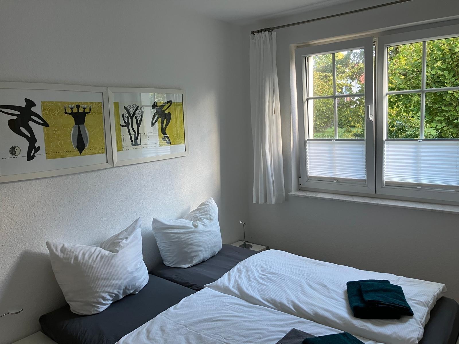 Schöne 58qm große EG-Wohnung mit 3 Zimmer / 2 Schlafzimmer, Garten und separatem Eingang. PKW-Stellplatz vor dem Haus vorhanden. Die Ferienwohnung liegt in ruhiger Lage in direkter Strandnähe (ca. 300 Meter). Die Wohnung verfügt über eine offene Küche zum Wohnzimmer inklusive Spüle, Geschirrspüler, Mikrowelle, Kühlschrank und Kaffeemaschine. WLAN vorhanden