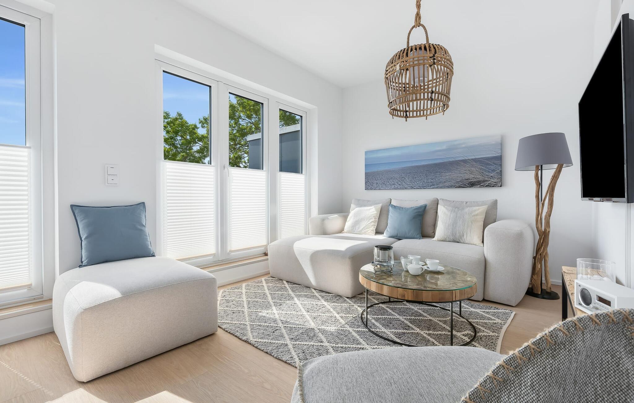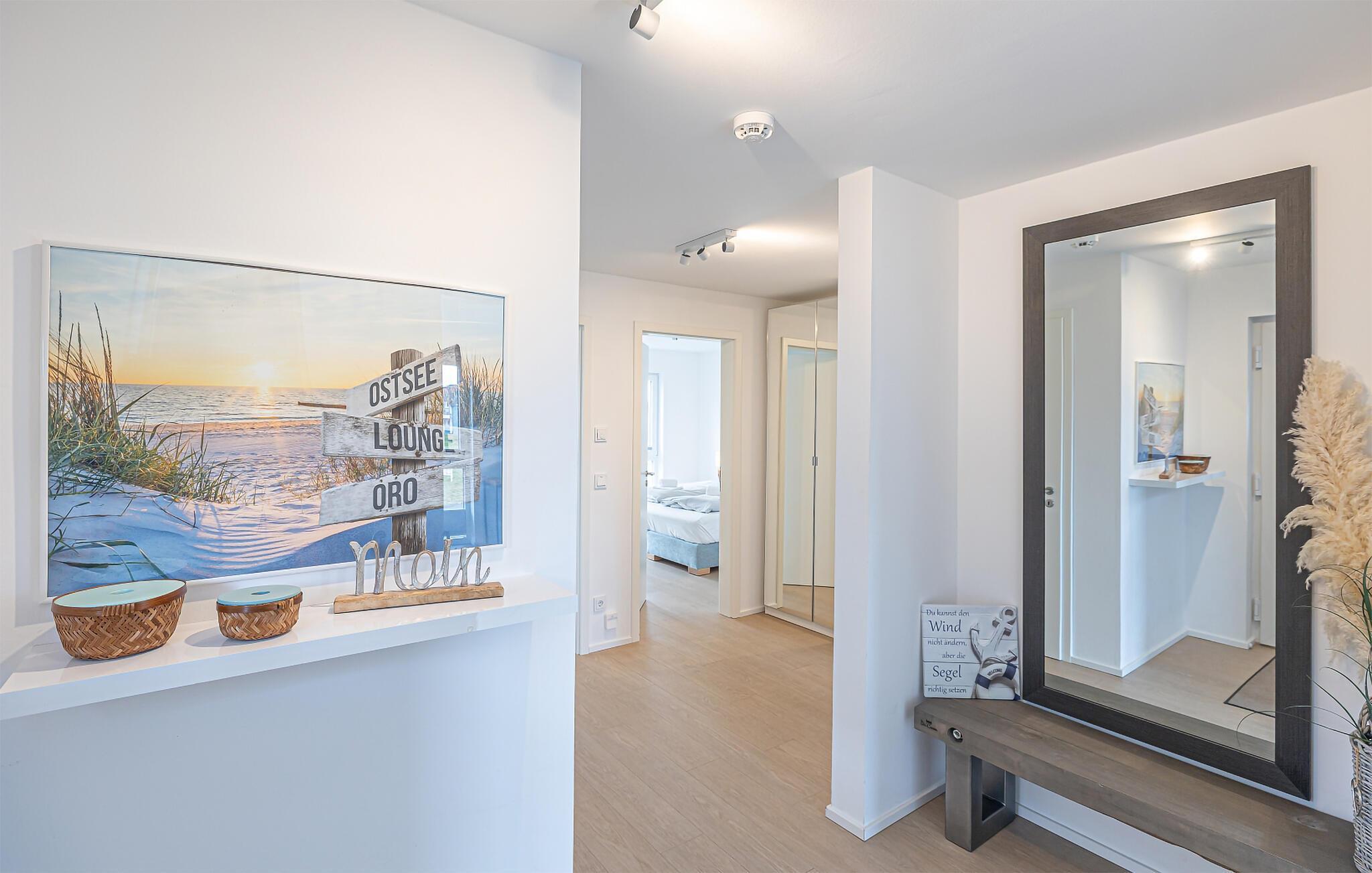 OSTSEELOUNGE ORO er en rummelig og rummelig maisonette-ferielejlighed på 1. og 2. sal med direkte udsigt over de naturbevarende strandenge, marker og Østersøen.