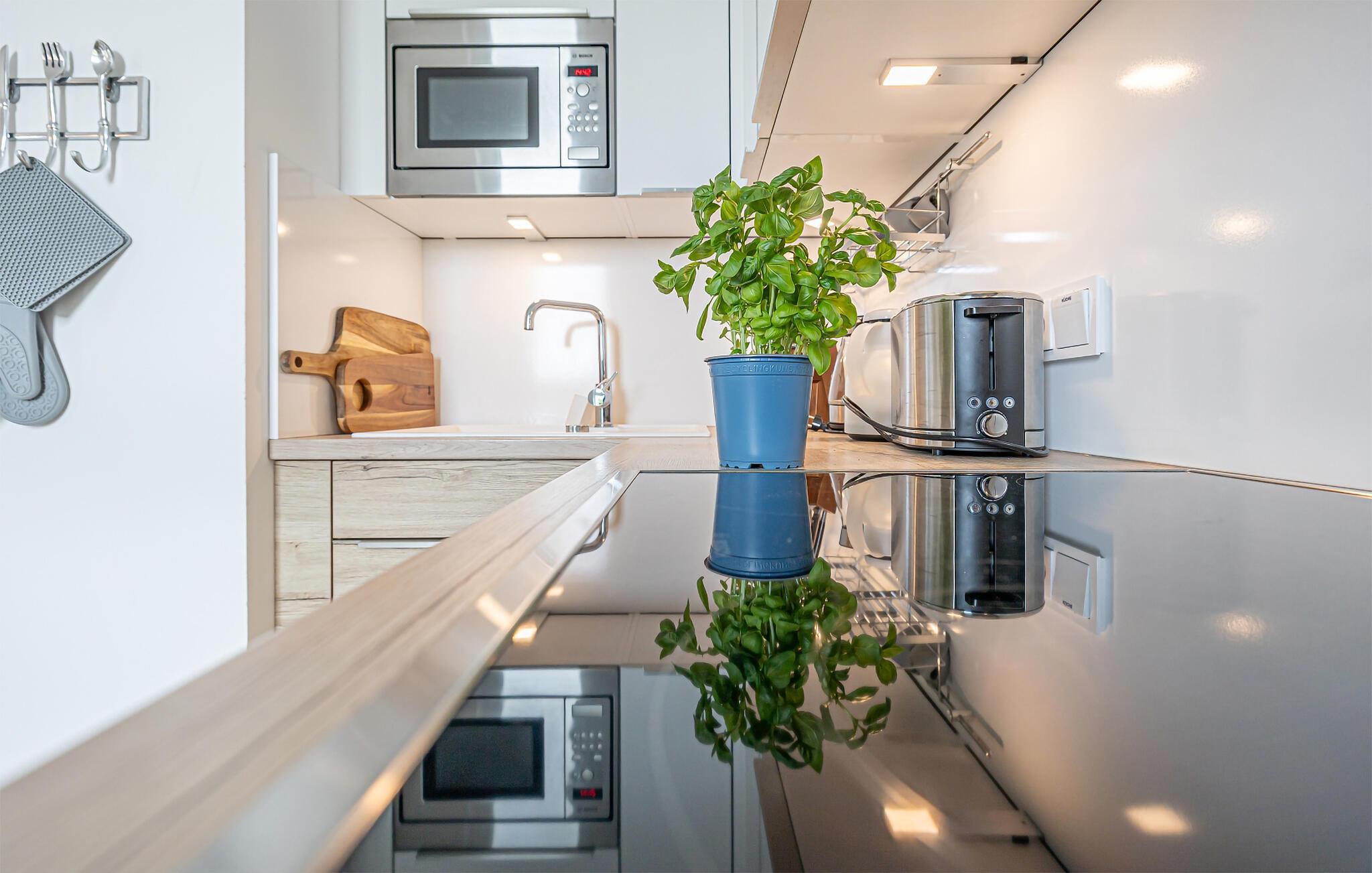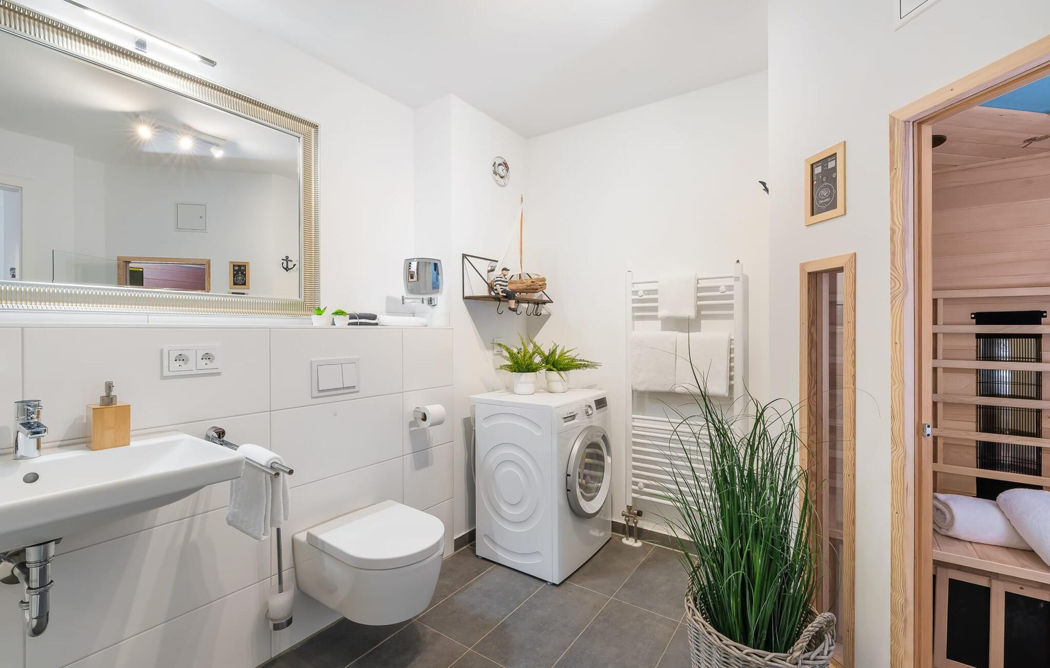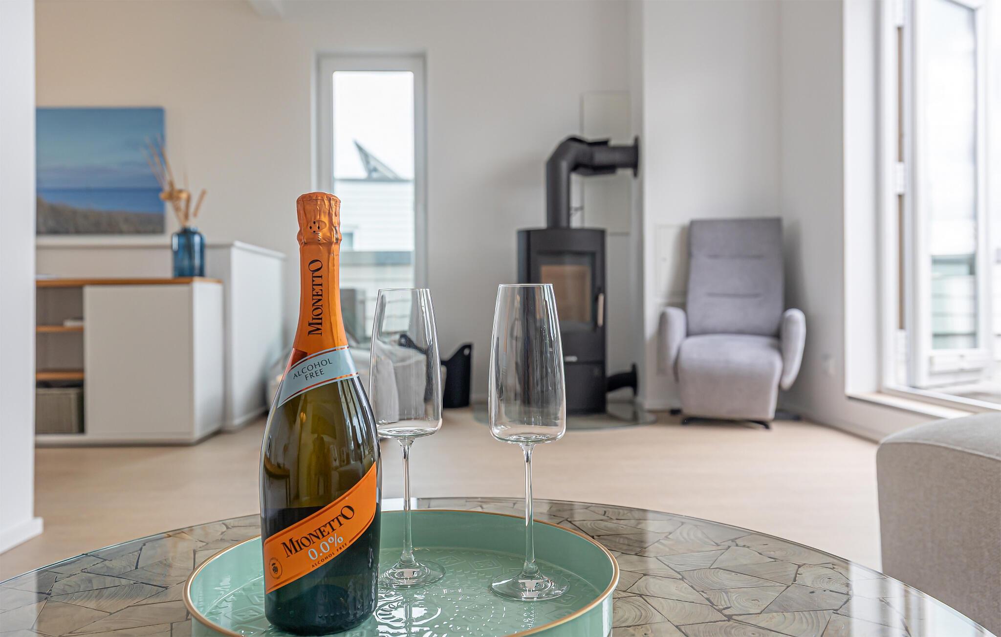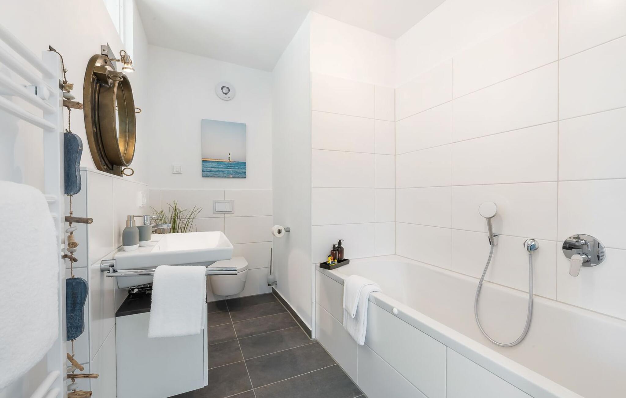 Det integrerede køkken med spiseplads til 6 personer er perfekt udstyret. På den store terrasse med dens sydvestlige orientering og drømmeudsigt kan I arrangere hyggelige grillaftener, slappe af i strandstolen eller nyde solen på liggestolen. Et andet badeværelse med ekstra toilet, håndvask og badekar byder på plads nok og alternative muligheder til flere personer og afrunder udstyret i denne velværeoase, som sikrer afslapning på ethvert tidspunkt af året. I finder jeres egen parkeringsplads foran ferielejligheden.
