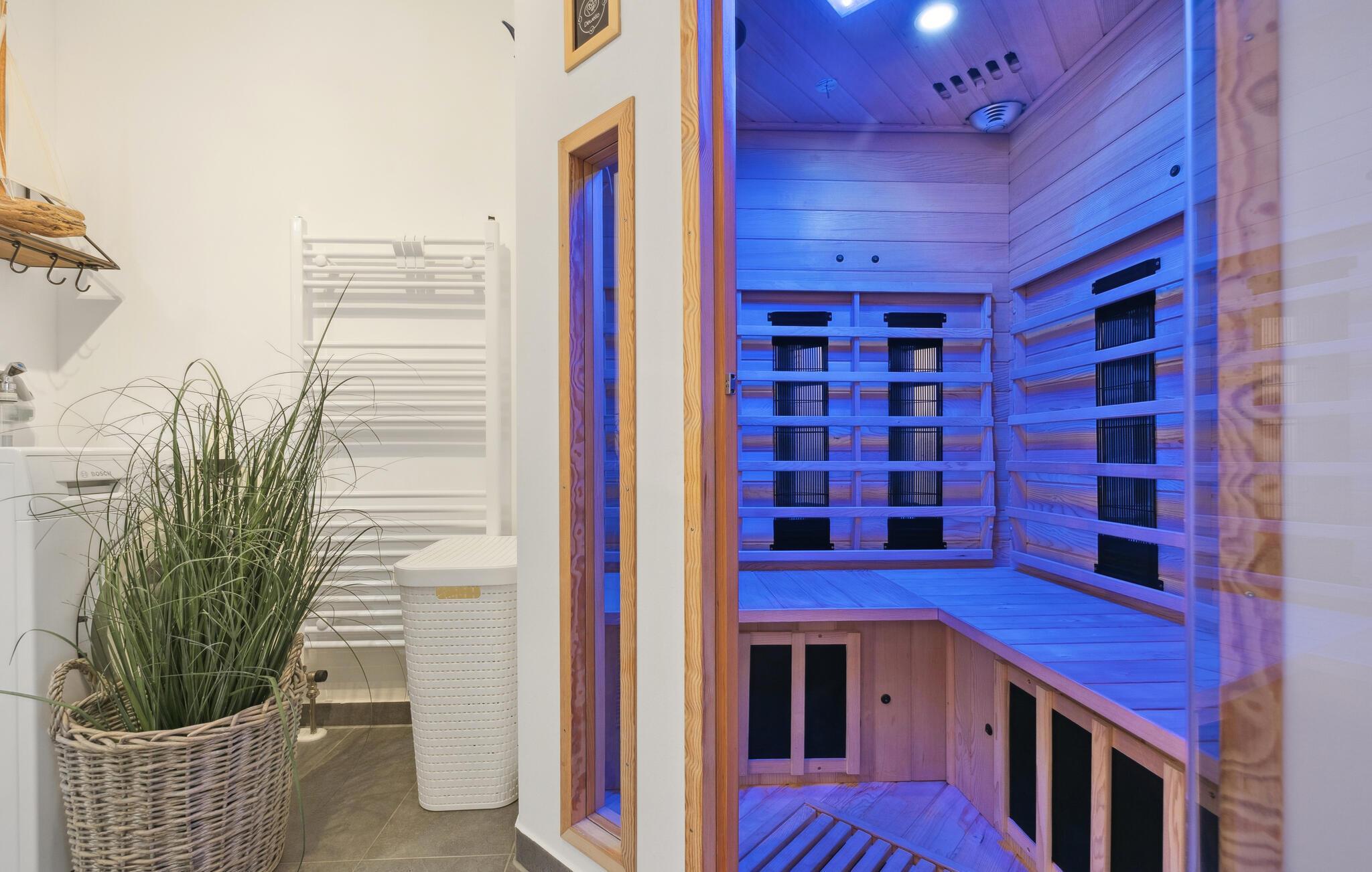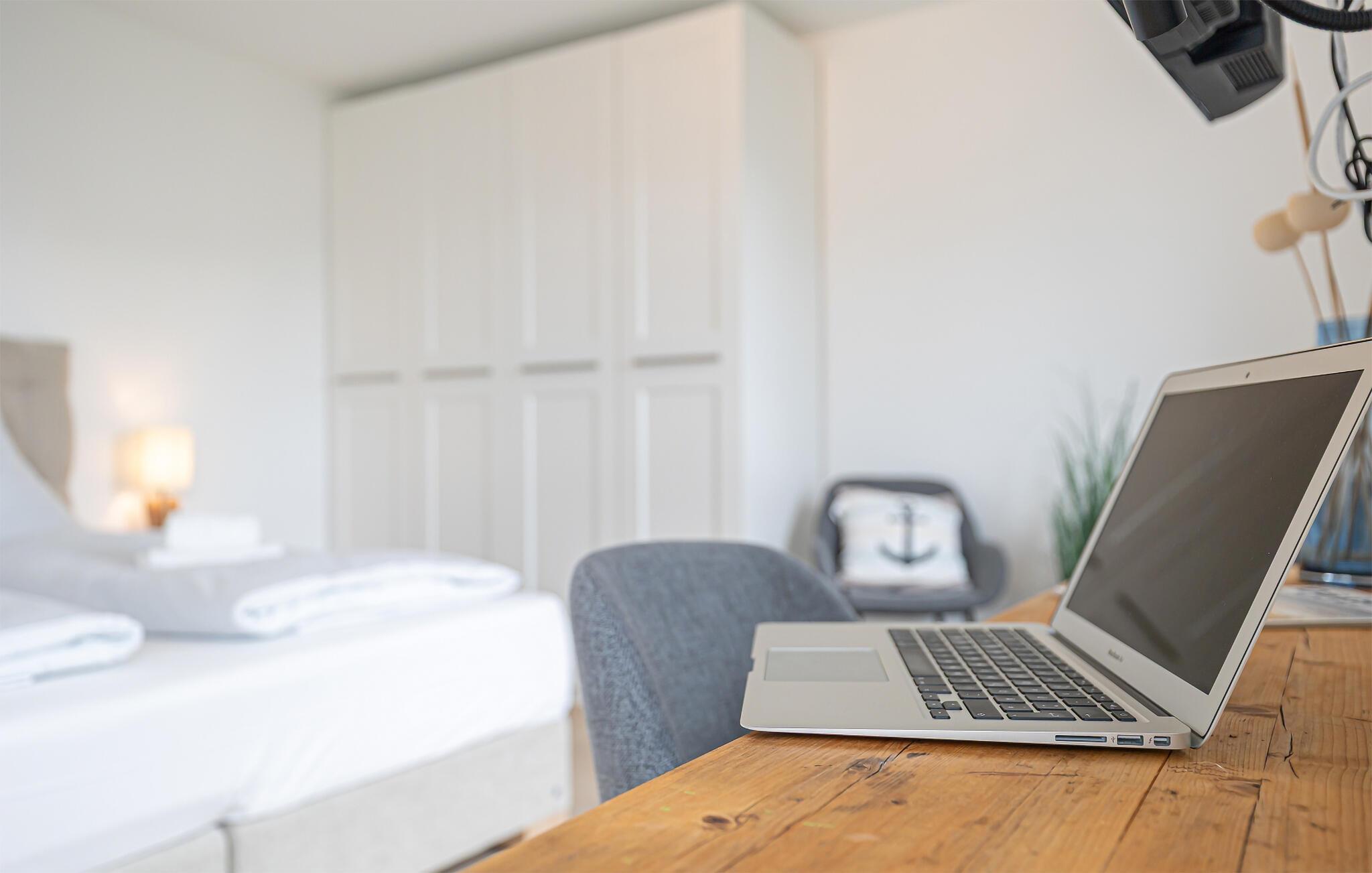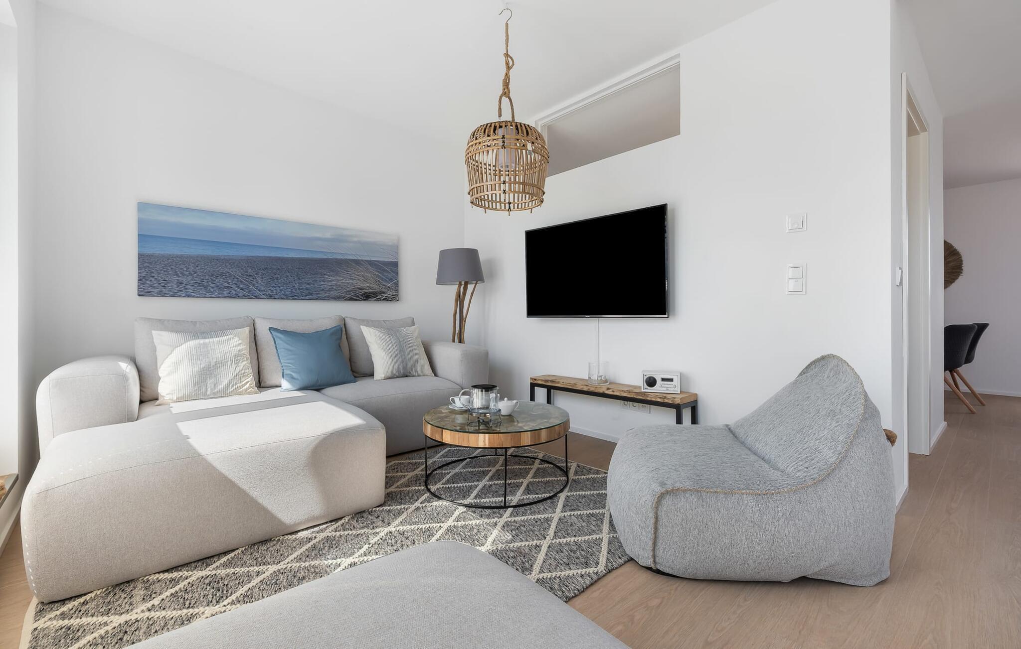 Når I træder ind i ferielejligheden på første sal, begynder nedbremsningen fra allerførste øjeblik. Det åbner direkte ind i lejlighedens afslapningsområde. De tre soveværelser er placeret på denne etage, lige meget hvilket I vælger, kan I være sikker på en afslappende søvn. To soveværelser er udstyret med boxspring-dobbeltsenge og et fjernsyn. Det tredje soveværelse byder på to ekstra sovemuligheder på to adskilte boxspringsenge. OSTSEELOUNGE ORO muliggør ikke kun afslappende feriedage, men også muligheden for at arbejde hjemmefra. Uden at ofre komforten blev to arbejdsstationer indlejret i ferielejlighedens overordnede koncept. Der er også et veludstyret badeværelse på denne etage med bruser i gulvniveau og infrarød sauna.