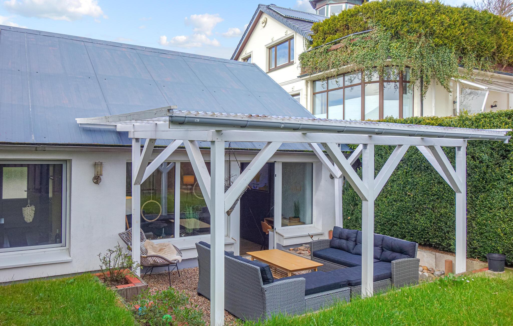 Til huset hører en fin lille have og en terrasse, hvor solen kan nydes, hvad end det er med leg med børnene eller med et godt krydsord på en havestol.