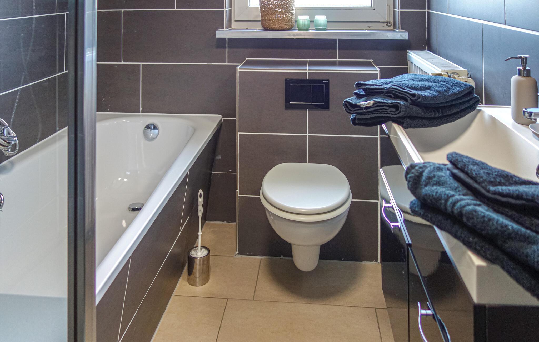 Badeværelse (nr. 1) - WC. Varmt og koldt vand. Bruser og badekar
