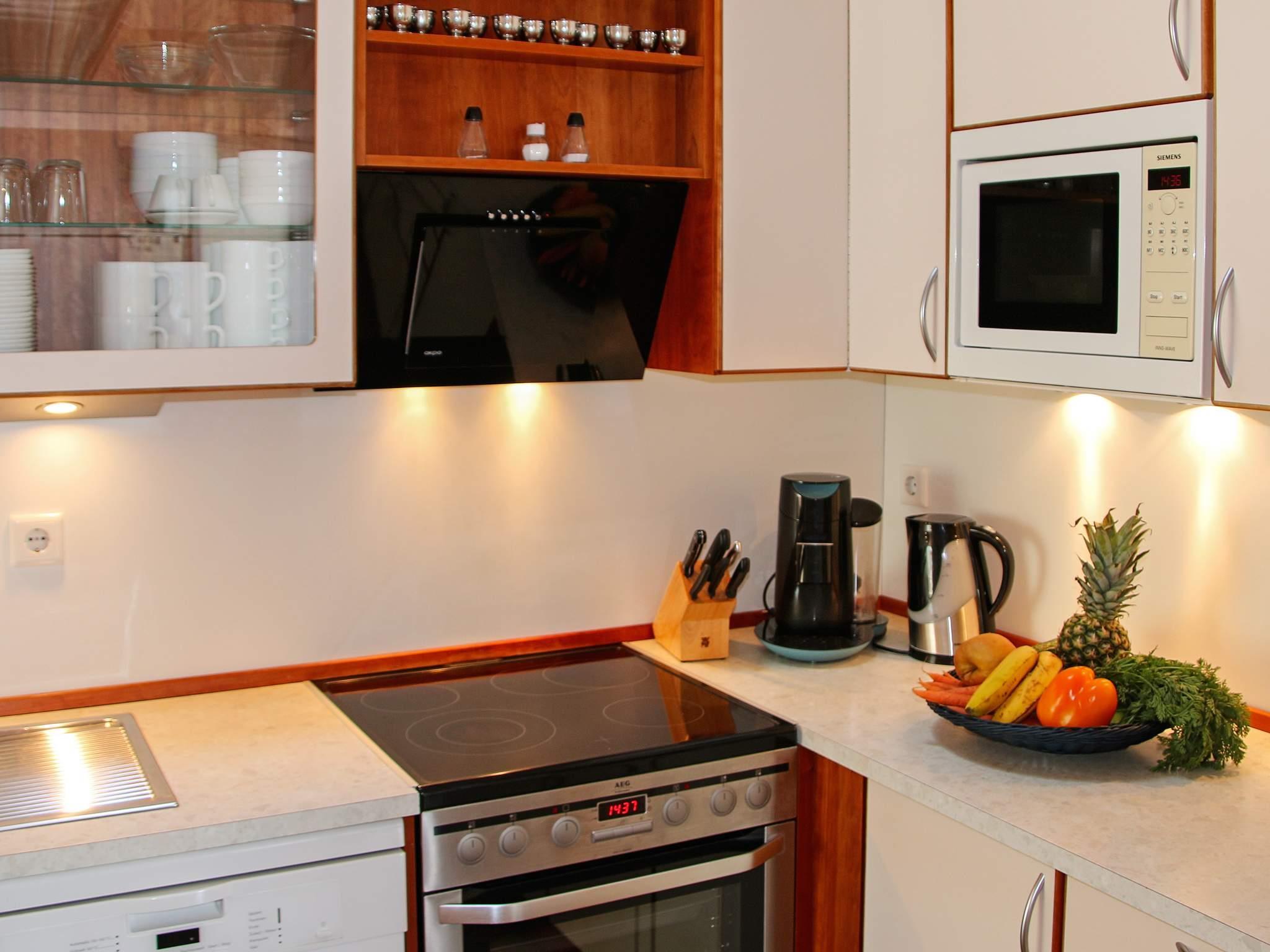 Køkkenafd.: el-komfur, køle-frys, mikroovn, emhætte, kaffemaskine, opvaskemask., vaskemask., tørretumbler