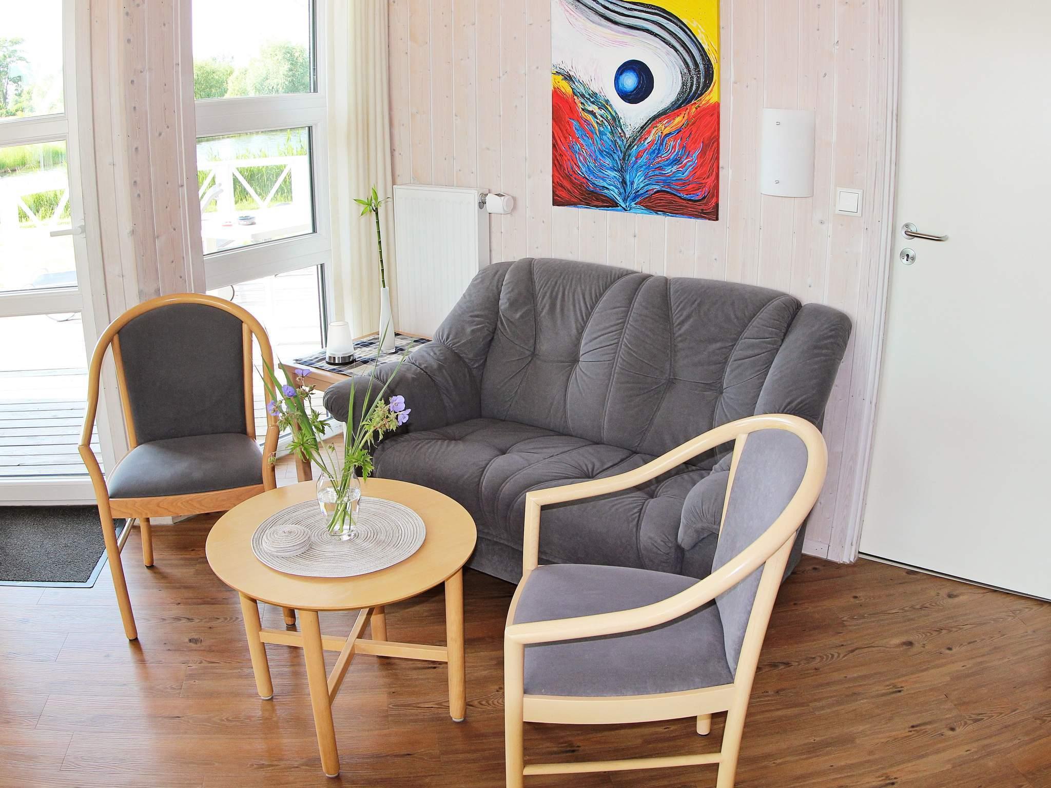Dette moderne og rummelige sommerhus ligger direkte ved vandet i den naturskønne Vand- og Landskabspark og er ideelt til familier eller grupper på op til 12 gæster. Gæsterne kan nyde udsigten over vandet fra den delvist overdækkede terrasse eller tage husets kano med på en fredelig padletur - på eget ansvar. Det store opholdsrum har to sofagrupper, en brændeovn og et spisebord til 12 personer, hvilket skaber en indbydende atmosfære. Fire soveværelser med dobbeltsenge og to alkover med hver to enkeltsenge gør det særligt attraktivt for familier med børn. Kæledyr er ikke tilladt på grund af allergivenlige gulve og testede tæpper i alle soveværelser.