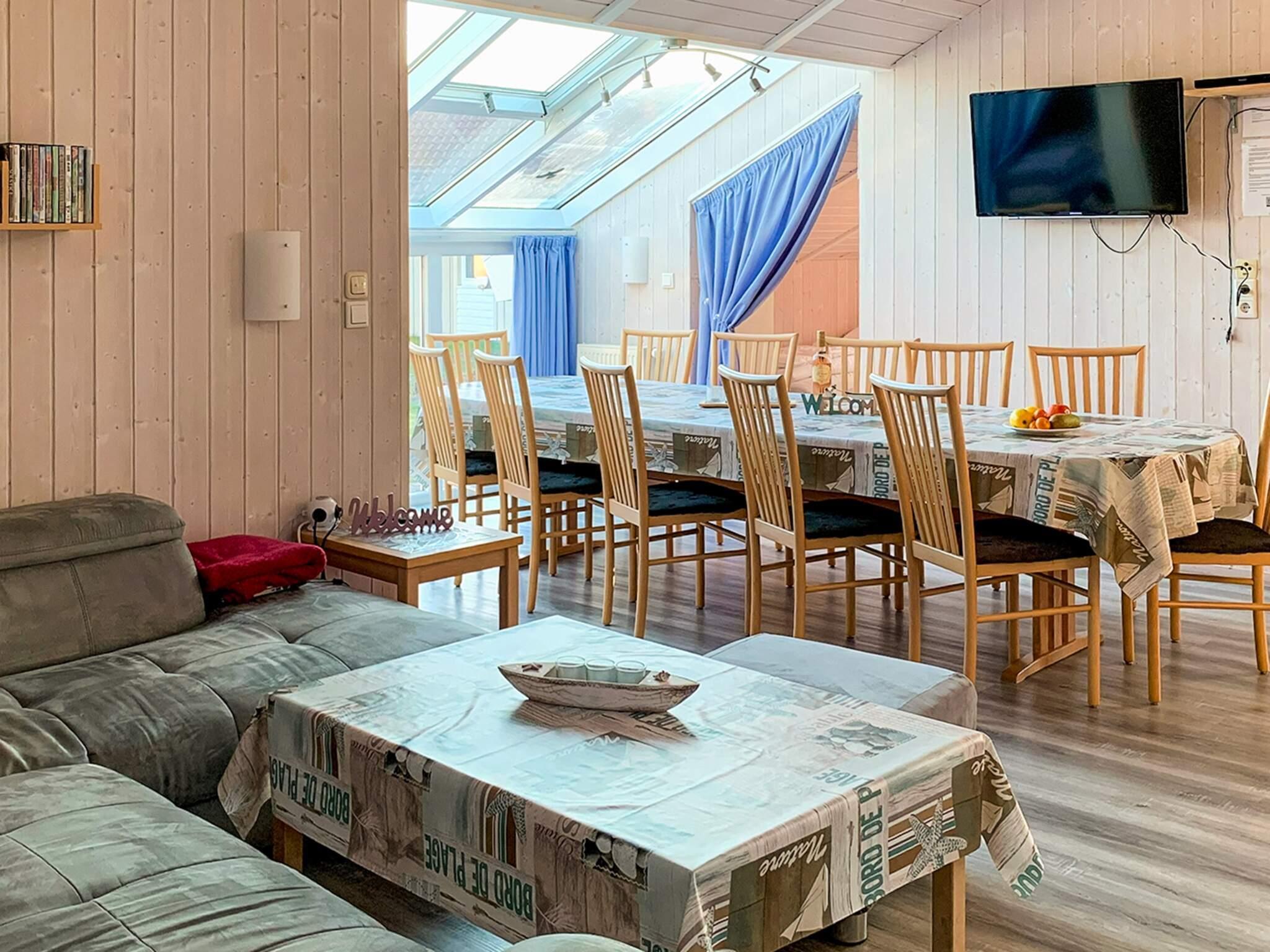 I tilknytning hertil ligger det åbne, moderne udstyrede køkken med bl.a. en Senseo-kaffemaskine. Opvaskemaskinen og køleskabet blev skiftet ud i 2022. Af yderligere udstyr er der liggestole, parasol, muret grill, barneseng og højstol inklusive, boghjørne, spil til store og små, 1000 GB Internet, stort LCD-fjernsyn og dvd-afspiller med film. I soveværelset ved indgangen findes der også et tv. Gulvet i stuen blev skiftet i 2022.