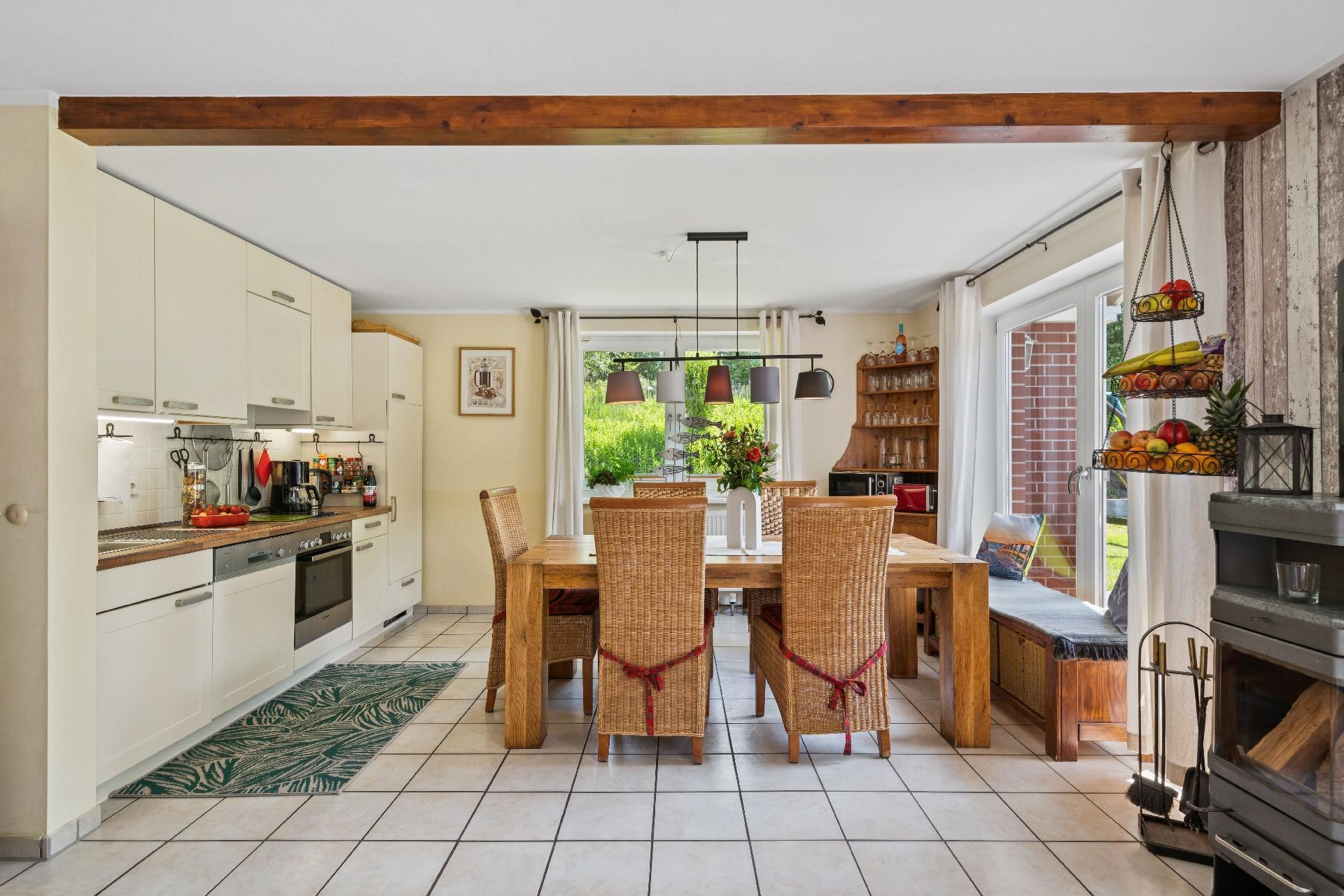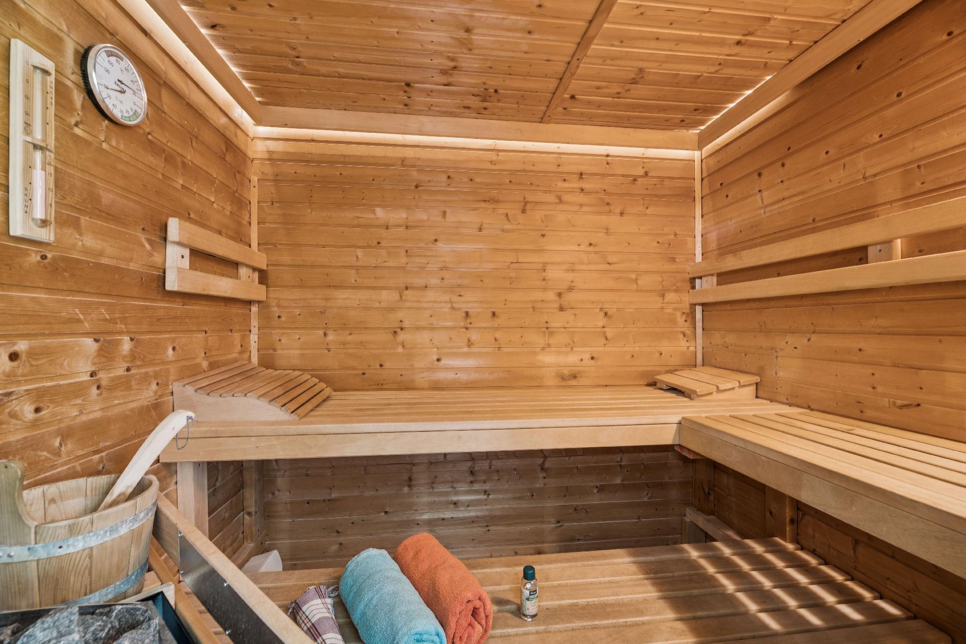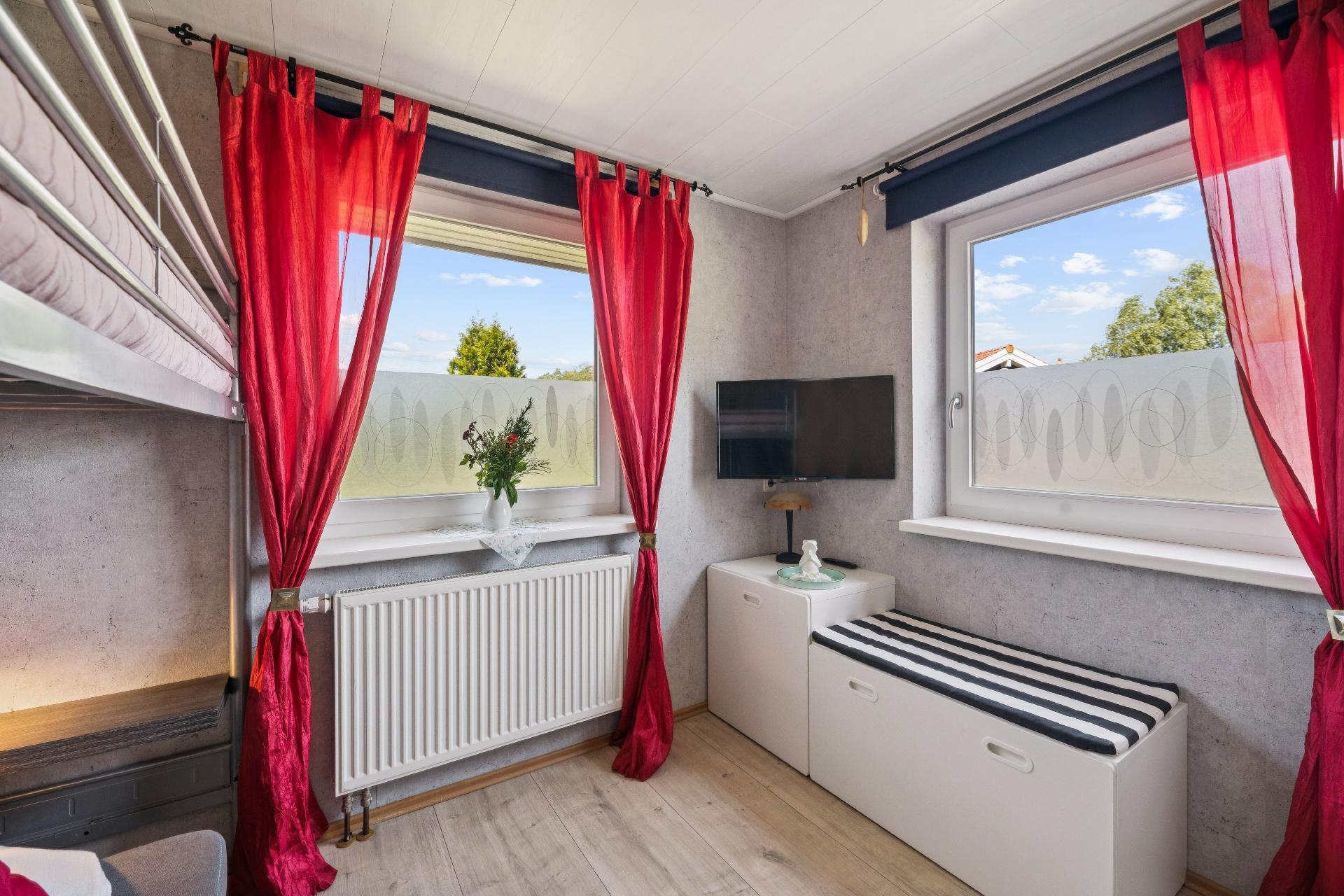 Inside, you will find a large living area with a cosy wood-burning stove, a real leather couch and a 42-inch LED TV, ideal for relaxing evenings. The centrepiece of the house is the wellness bathroom with a sauna that can accommodate up to four people, complemented by a guest WC. Three tastefully furnished bedrooms and a play loft provide ample space for peace and privacy. Underfloor heating, a comprehensive selection of games and a fibre-optic WLAN connection add to the sense of well-being. The kitchen is fully equipped, and a storage room with washing machine and tumble dryer round off the offer.