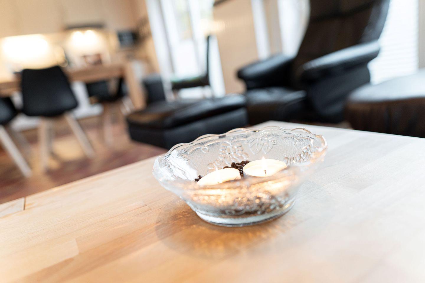 Kinderbett, Hochstuhl, Sauna, Kamin, Wireless-Lan, Waschmaschine, Mikrowelle, Kaffeemaschine, Wasserkocher, Toaster, Geschirrspüler, DVD-Player, Stereoanlage mit CD-Player, Radio, 2 Farb-TV mit Sat-Anlage, Sky Fernsehen, Bügelbrett, Insektenschutz, Außenrolläden, Grillkamin sowie überdachte Südterrasse, Bettwäsche und Handtücher inklusive