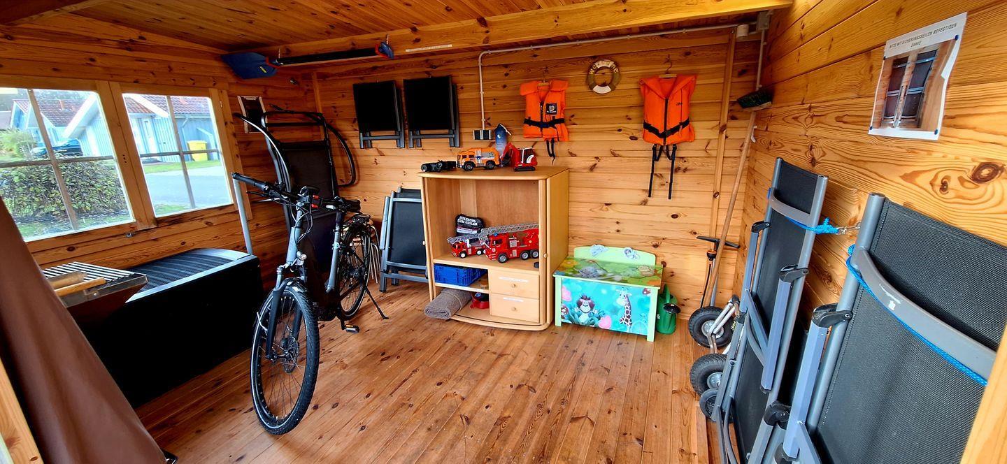 Ihre Kinder können im Außenbereich auf der großen Rasenfläche toben oder im Sandkasten. Auch steht Ihnen ein Kanu zu Verfügung. Die Terrasse ist möbliert und teilweise überdacht, zum Relaxen stehen Gartenliegen zur Verfügung.