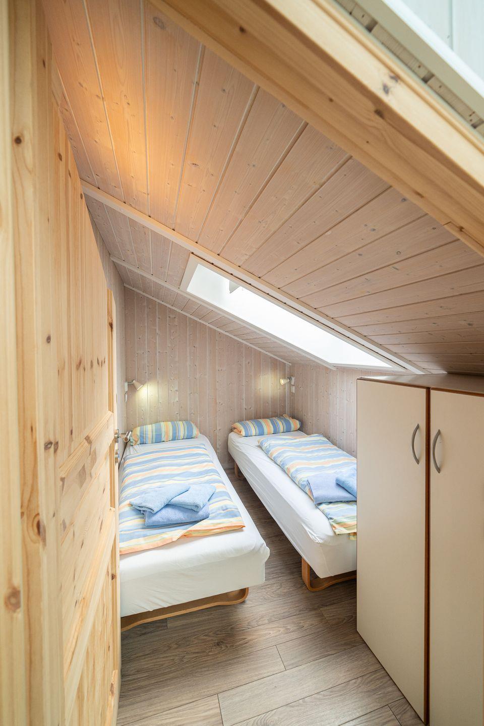 Alles ist hier für einen richtigen Wellnessurlaub vorhanden: Dampfsauna mit Dufteffekt, Whirlpool für 5 bis 7 Pers. unter großem Atelierfenster mit Blick in den Sternenhimmel. Große Sauna (Liegeplätze für 4 Personen) mit fünf Badeformen für gesunden Genuss: Wahl zwischen der klassischen Sauna, Tropenbad, Soft-Dampfbad, Aromabad und Warmluftbad. Schwalldusche und Massagebett/Ruhebank. Der mit Wintergarten- und Atelierfenstern versehene, 33 m² große Wohnraum ist mit einem gemütlichen Kaminofen, zwei kompletten Sitzgruppen und einem Esstisch für 12 Personen ausgestattet. Angrenzend die offene, mit modernen Geräten ausgestattete Küche. Die Morgenterrasse ist 12 m² und vom Wohnraum aus gelangt man auf die 21 m² große, teilweise überdachte Sonnenterrasse. Alle vier Schlafräume sind mit je einem Doppelbett für insgesamt 8 Personen eingerichtet. Drei der Betten sind mit einer durchgehenden Matratze (180x200 cm) ausgestattet. Der Clou sind die zwei besonders von Kindern geliebten Alkoven, die Sie gerne als Schlafhöhle bezeichnen. Alles in allem bietet dieses Haus den perfekten Rahmen für Wellnessurlaub im eigenen Ferienhaus. Den Gästen des Hauses steht ein hochwertiges Kanu für 2 Erwachsene und 2 Kinder zur freien Verfügung (auf eigene Verantwortung/Versicherung).