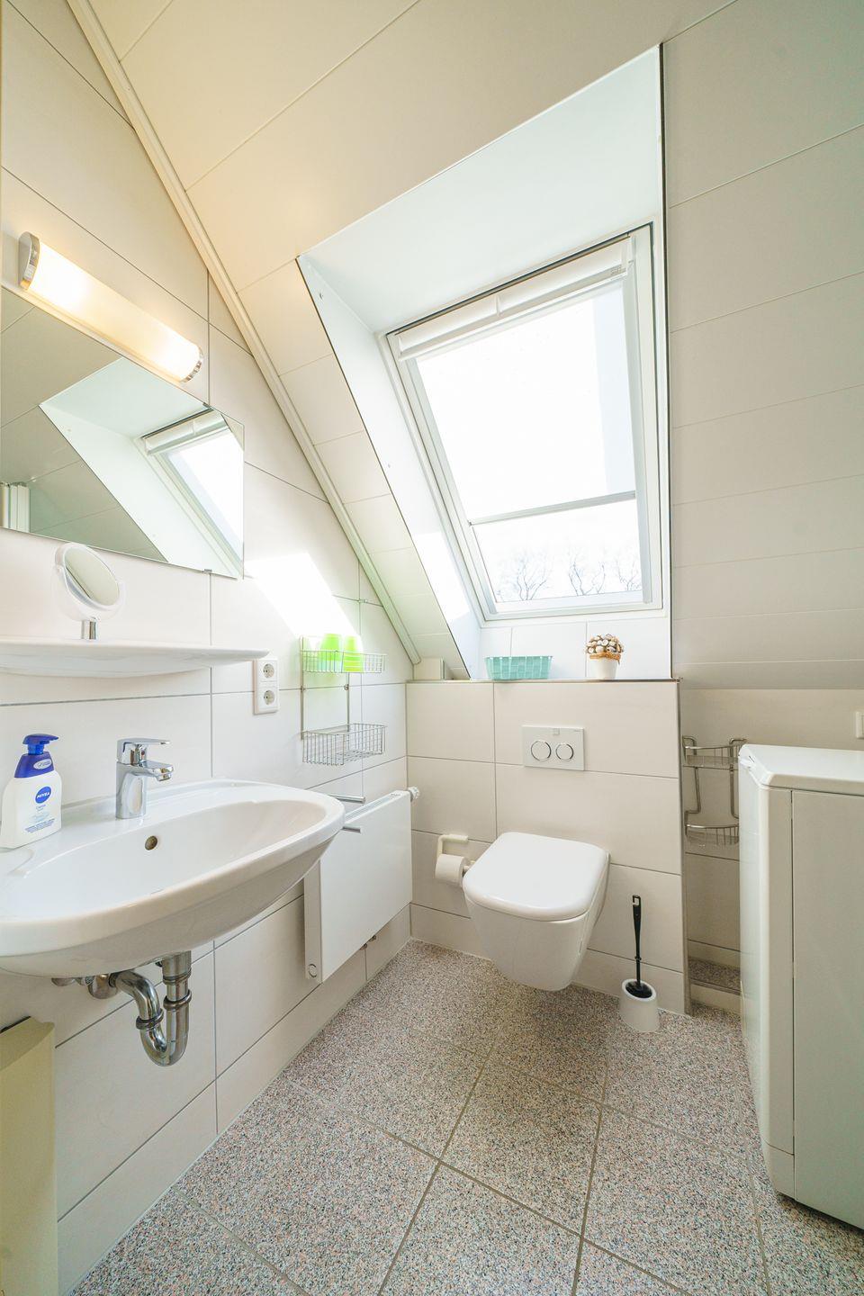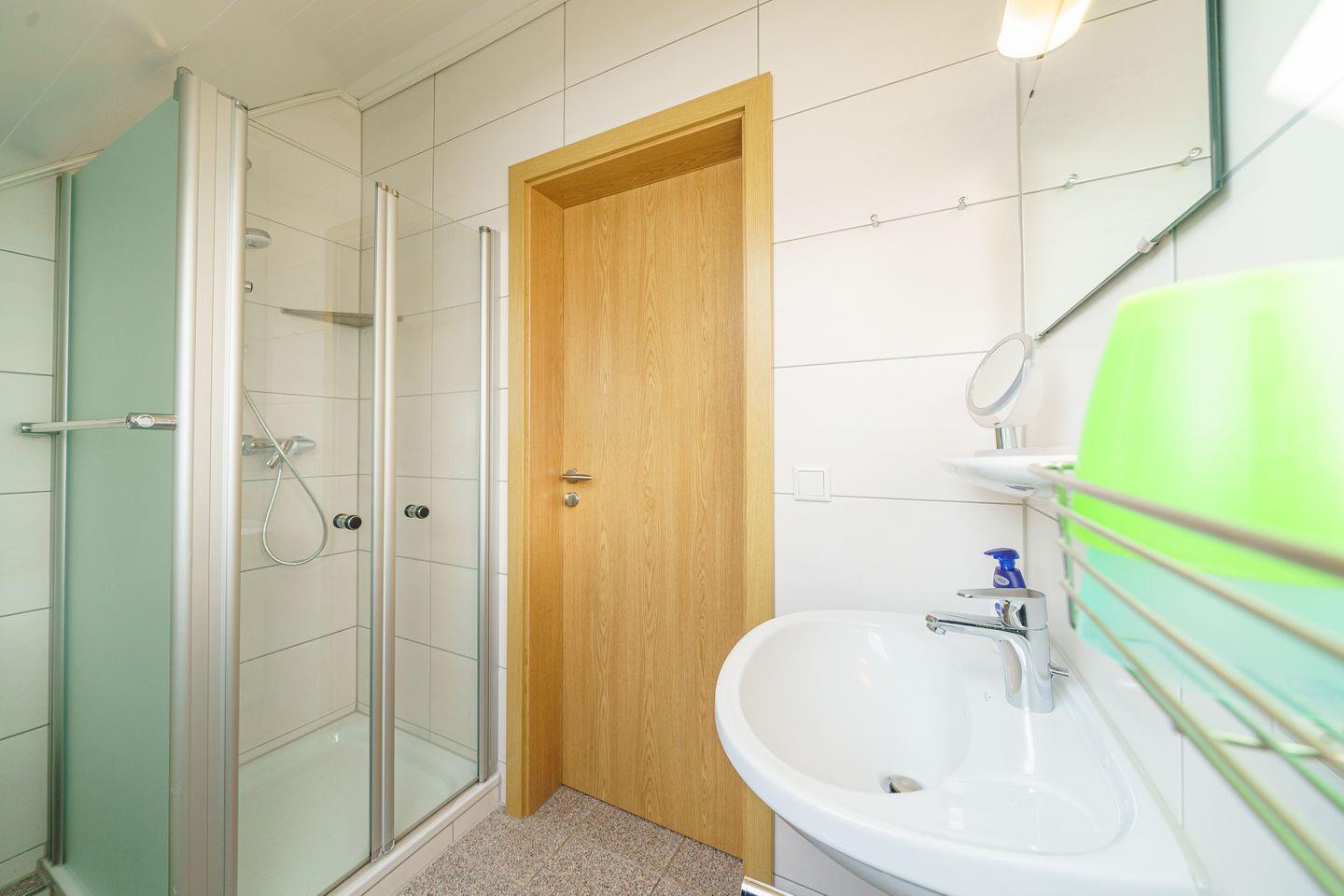 Das Badezimmer ist mit einer Dusche sowie einer Waschmaschine ausgestattet.