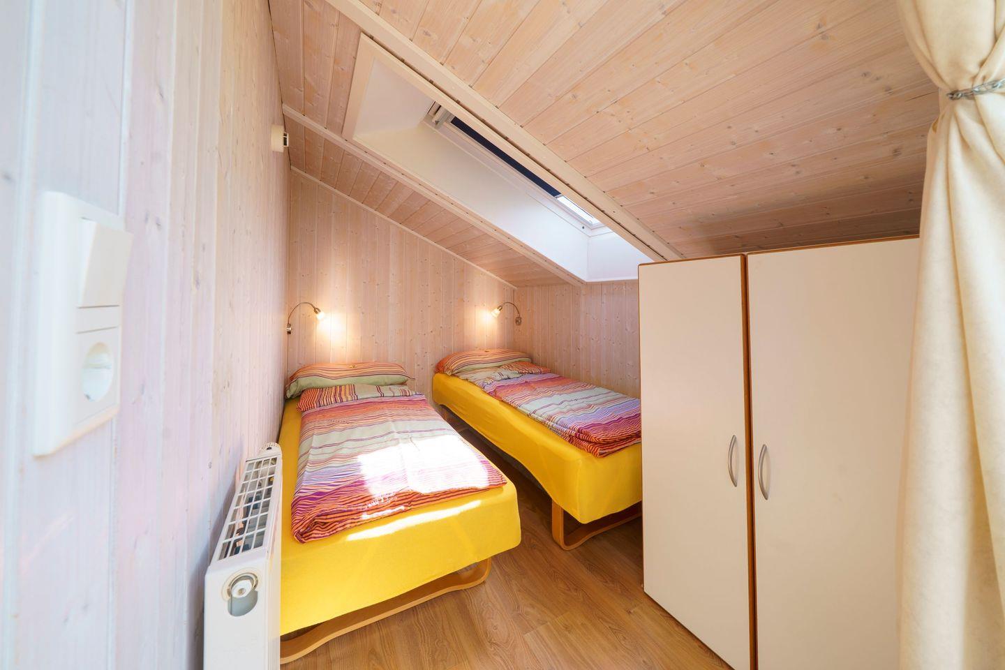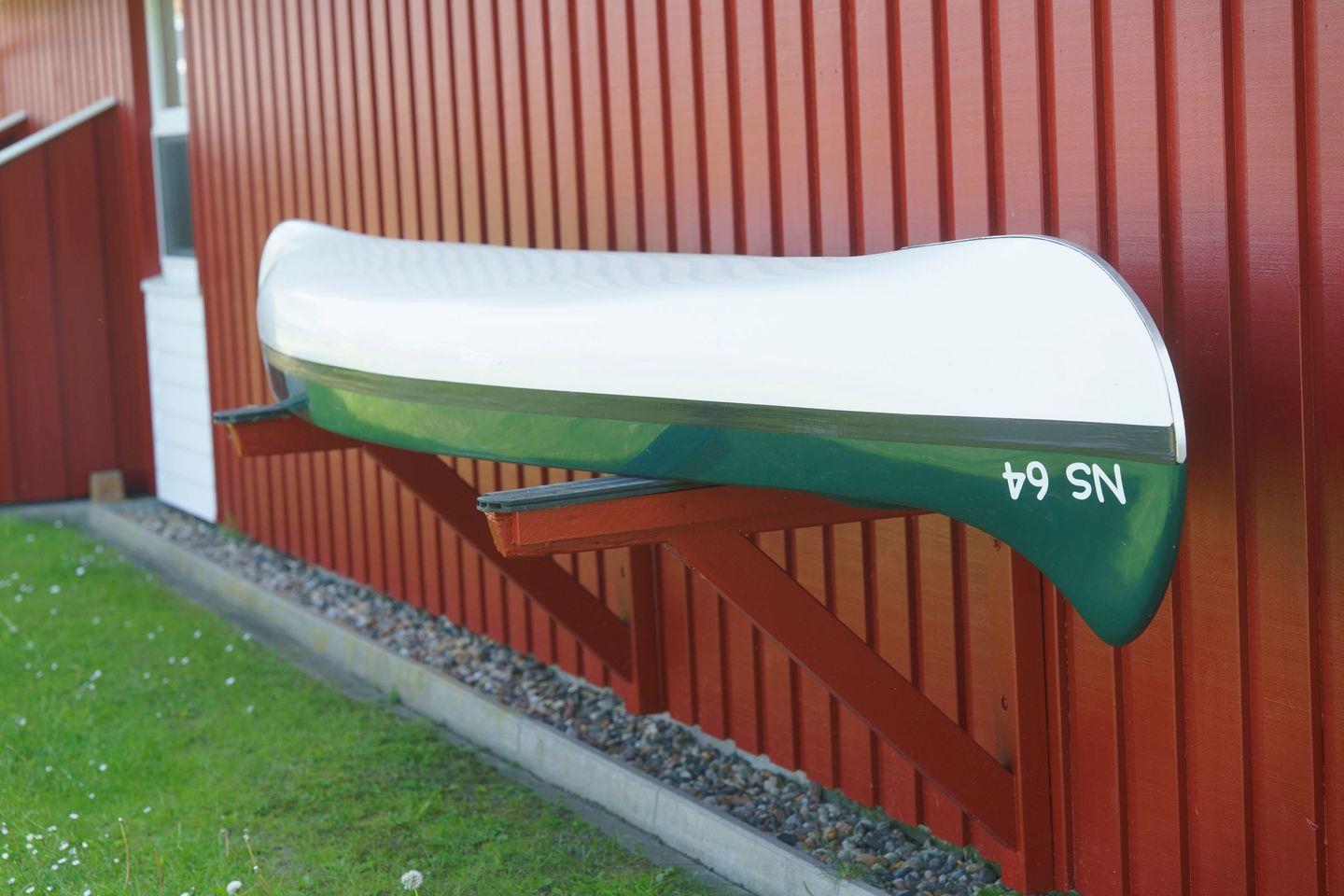 Alle 4 Schlafräume sind mit Doppelbetten für insgesamt 8 Personen eingerichtet. Zwei Schlafzimmer haben nur Platz für je 1 Kinderbett. Der Clou sind die 2 besonders von Kindern geliebten Alkoven, die gerne als Schlafhöhle bezeichnet werden. In jedem Alkoven befinden sich je 2 Einzelbetten, für Erwachsene berechnet. 2 Badezimmer mit je einem Haartrockner machen auch den Aufenthalt von mehreren Personen angenehm. An allen Fenstern sind Fliegengitter befestigt. Außerdem steht den Gästen ein Kanu, sowie ein Kanuwagen zum Transport zur freien Verfügung. Große und Kinder-Schwimmwesten sind vorhanden. Der See ist 40 m vom Haus entfernt. Die Nutzung geschieht auf eigene Verantwortung. Für Kinder ist ein Klettergerüst mit Rutsche, Kletterseil und 2 Schaukeln vorhanden, es wird mit den Gästen vom linken Ferienhaus Nr. 66 gemeinsam genutzt.