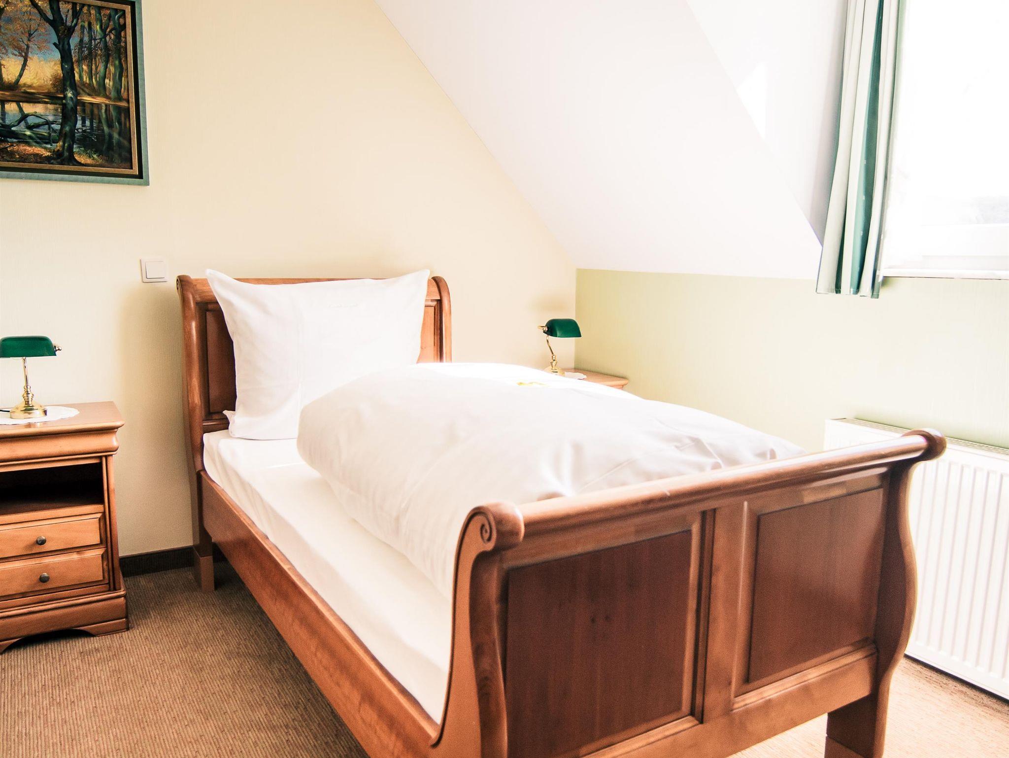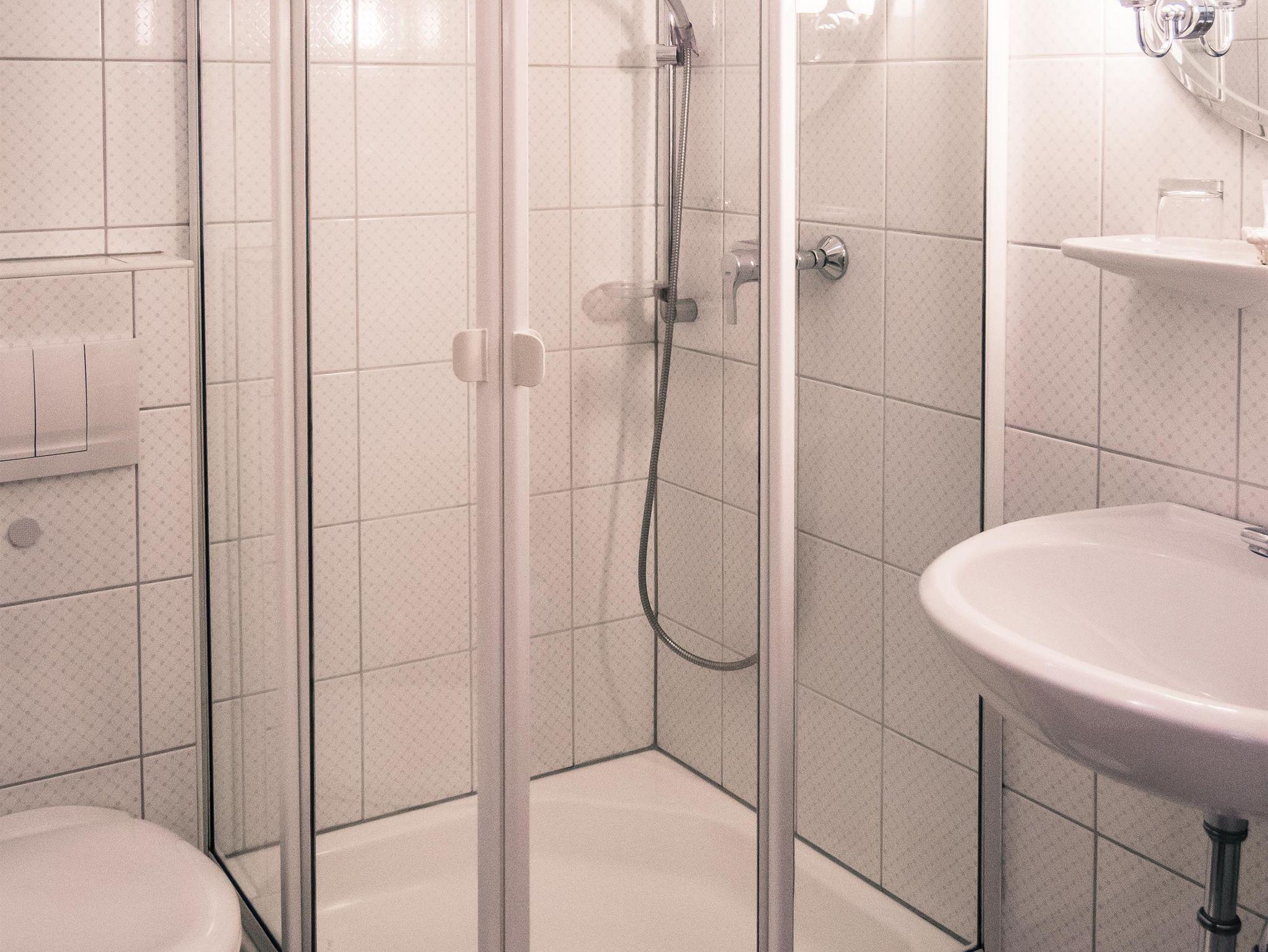 Ein Teil unserer Einzelzimmer liegt ruhig nach hinten raus, andere sind geräumiger, allerdings an der Vorderseite gelegen. Diese Zimmer haben dafür neben mehr Platz auch ein helles Bad mit Tageslicht.