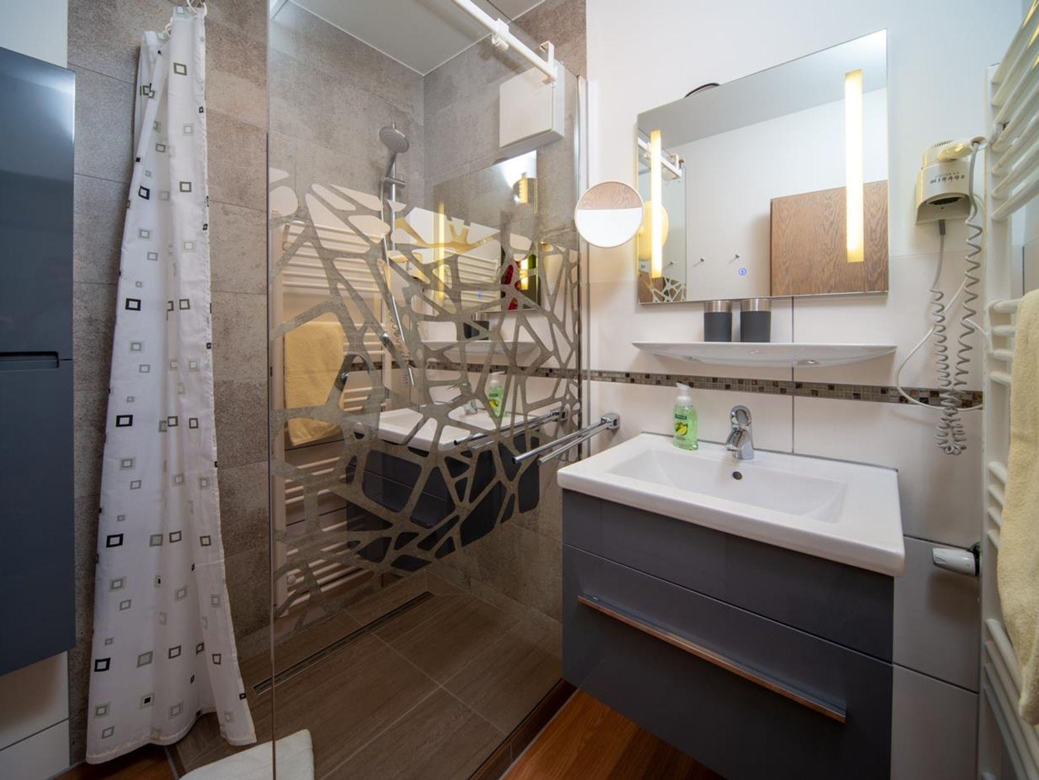 Panoramablick: Neue Küche 2016 mit Wasserkocher, Kaffeemaschine, Toaster, Küchenradio, Spülmaschine, Ceran-Kochfeld, Backofen mit Heißluft und Grill, Microwelle und großer Kühlschrank mit ***Gefrierfach. Im Wohnbereich: LCD Fernseher, Videorecorder/DVD Player, tragbares Radio-CD/DVD Player. 2 mal Schlafcouch zum ausziehen. Neu renoviertes Badezimmer mit großer Dusche. Kosmetikspiegel, Haartrockner. Separates WC. Schlafzimmer mit Doppelbett und Fernseher. Kinderzimmer mit 2 Betten (Stockbett)