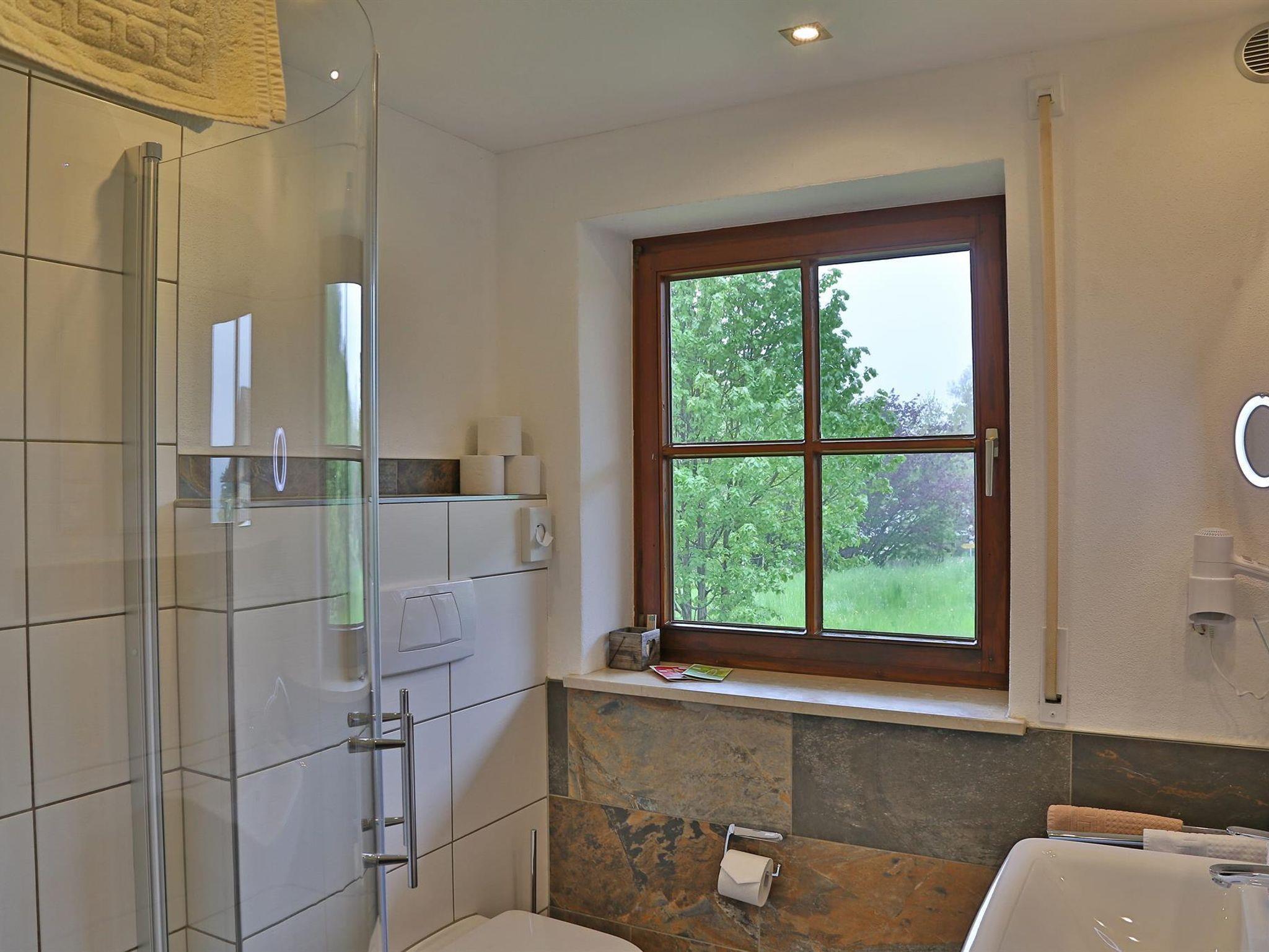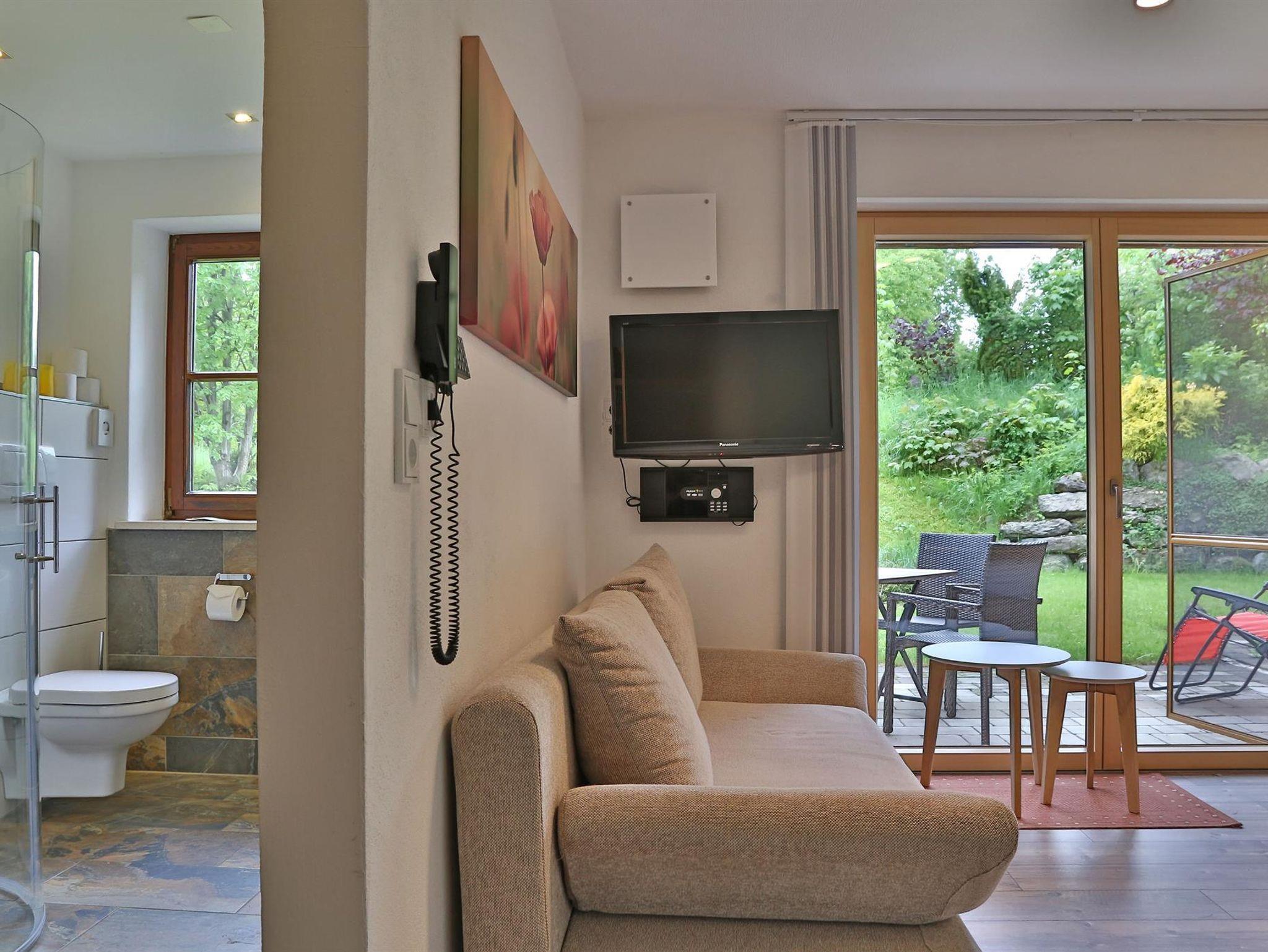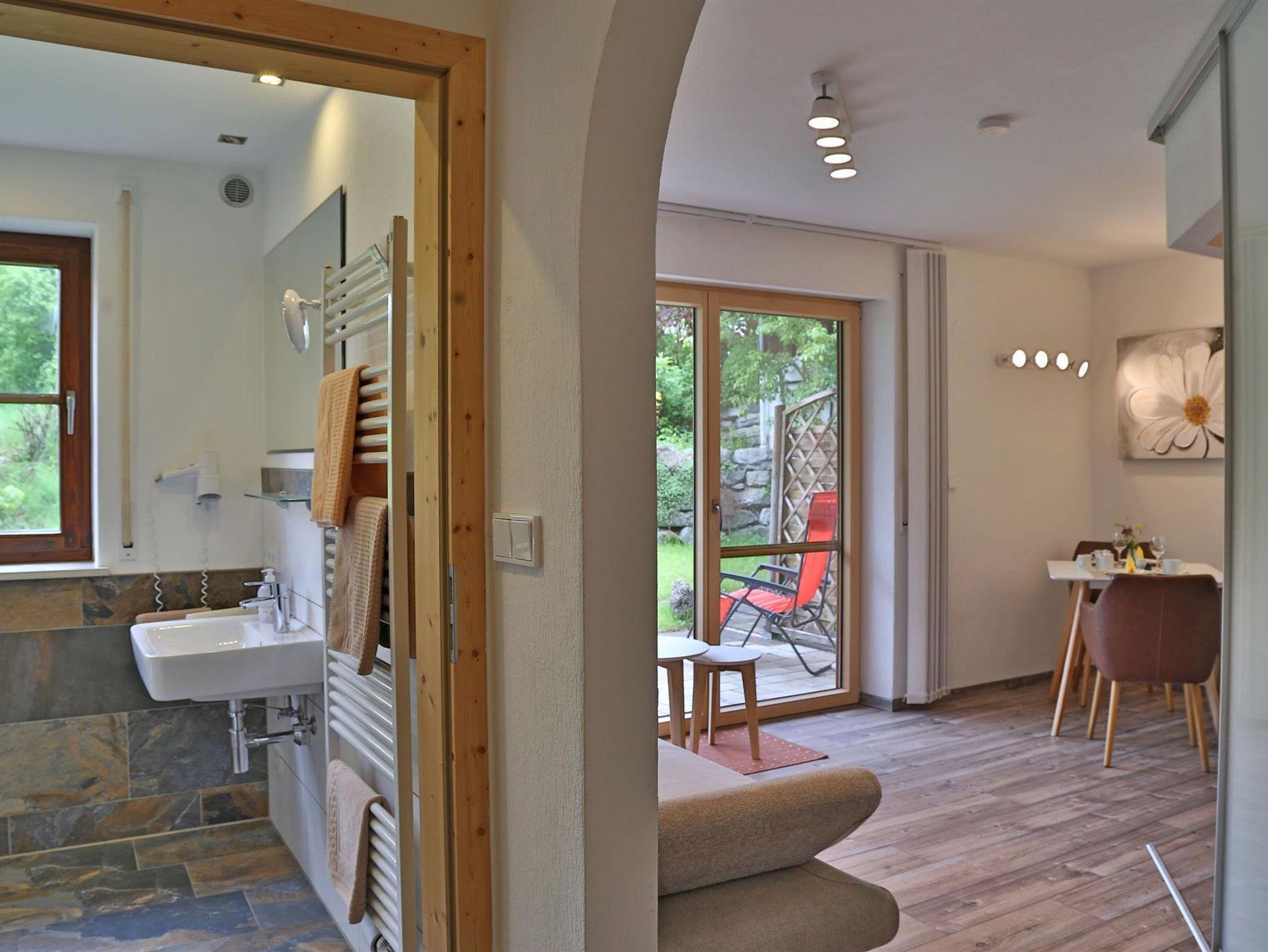 Das Bio-Gästehaus bietet 6 liebevoll eingerichtete Ferienwohnungen von 35-75 qm, Finnische-Sauna, Bio-Dampfbad und Infrarotsauna und kleinem Fitnessbereich. Gemeinsame Nutzung von Waschmaschine, Trockner und Bügelstation. Großer Naturgarten mit Teich und Liegewiese, Kinderspielplatz mit Kletterturm und mit Schaukeln. Garagen, Fahrrad-/Skiraum, Schneeschuhe, Tischtennis. Neu - Gästeempfang und Kaminzimmer.