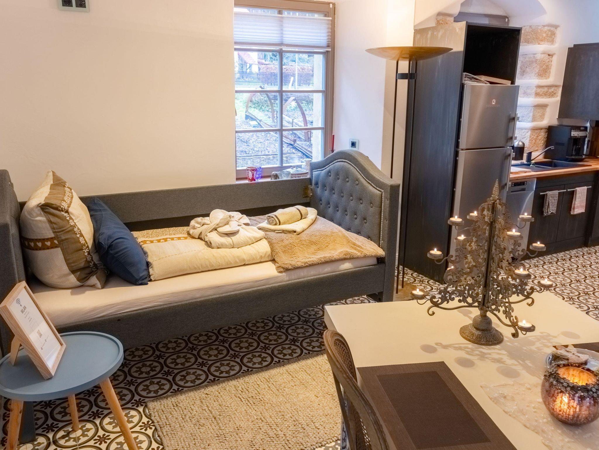 Unser Appartement Himmelreich ist das Ergebnis aller Vorherigen: hier haben wir all unsere Erfahrungen (auch Fehler!) zu korrigieren versucht. Herausgekommen ist ein umwerfendes Appartement im Loft-Stil mit Whirlpool, einem abgetrennten Schlafraum für Kids und einem extra Schlafraum für Erwachsene. Eine offene Küche und eine große Terrasse zur Mitbenutzung, also das ideale Familiendomizil.