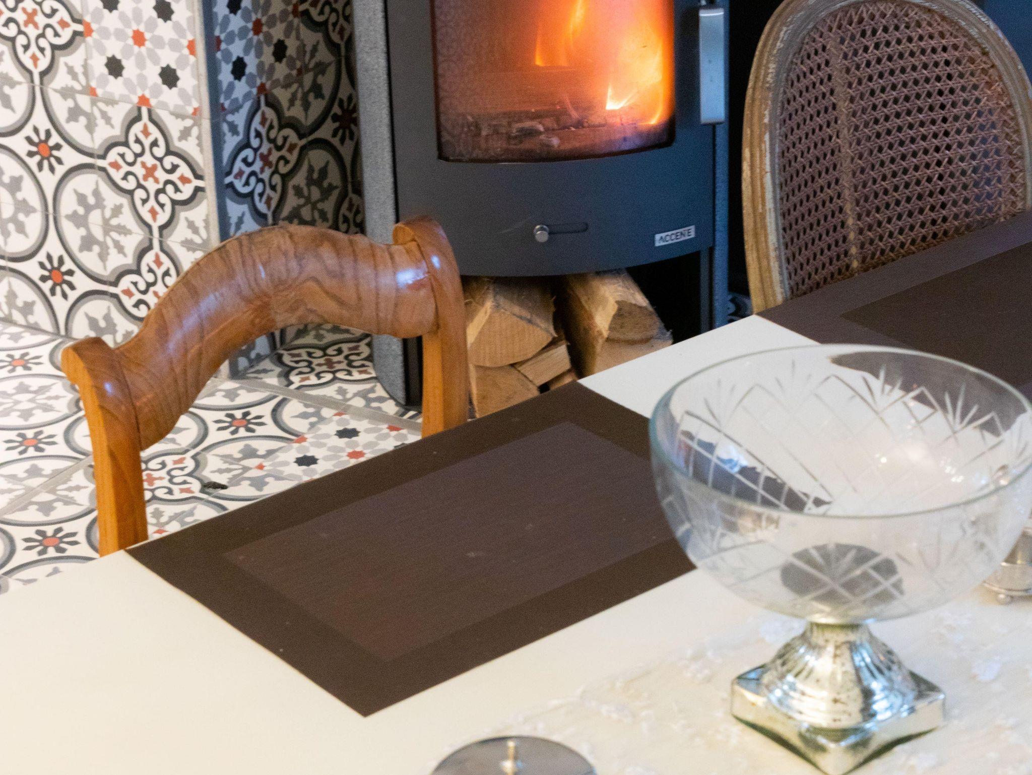 • Kamin mit Holzpaket (Kaminholz und Anzünder), Infrarotheizung