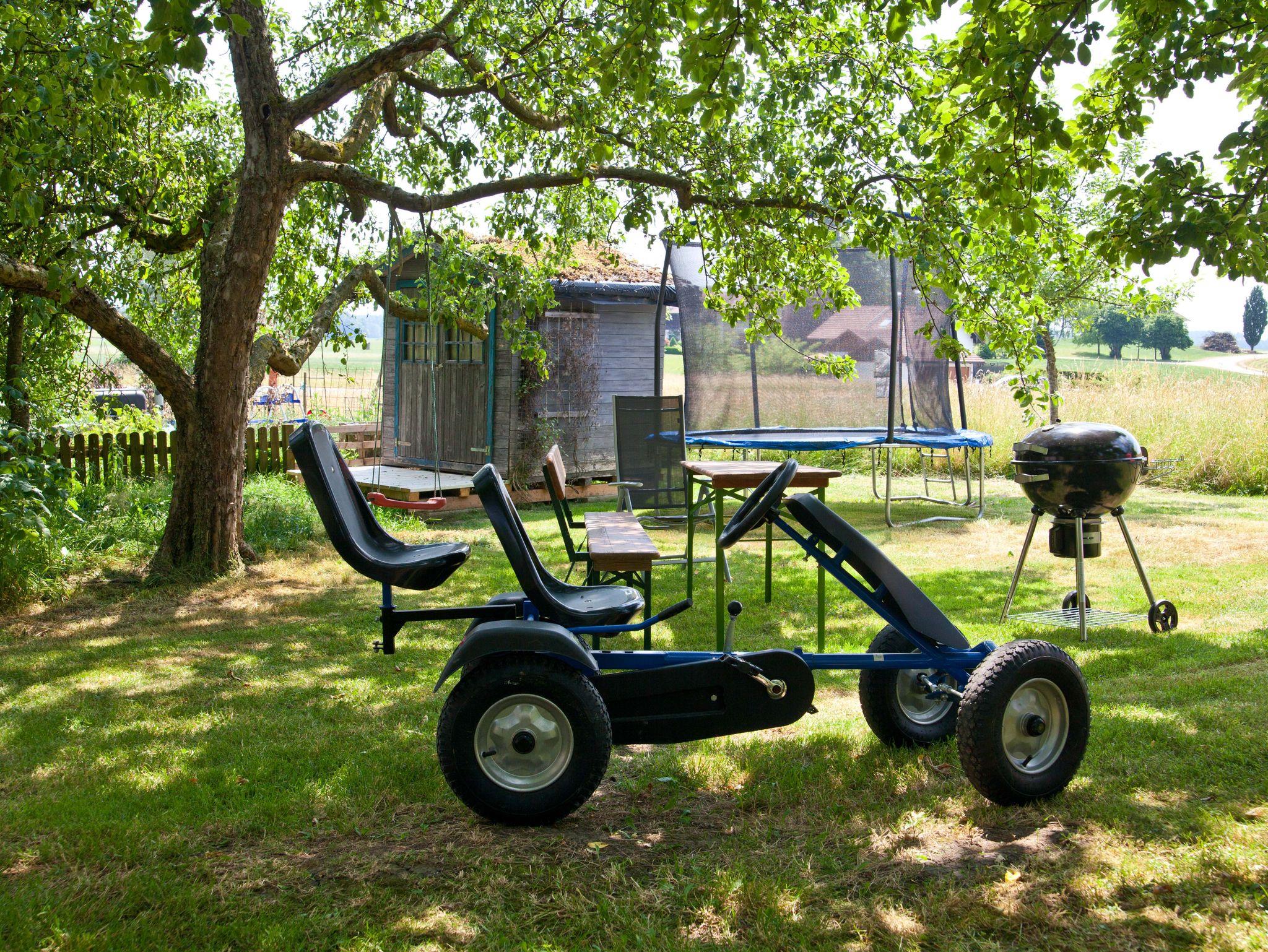 Von den 2 Balkonen aus, haben Sie einen herrlichen Blick in den Obstanger und den Gästegarten mit Spielplatz.