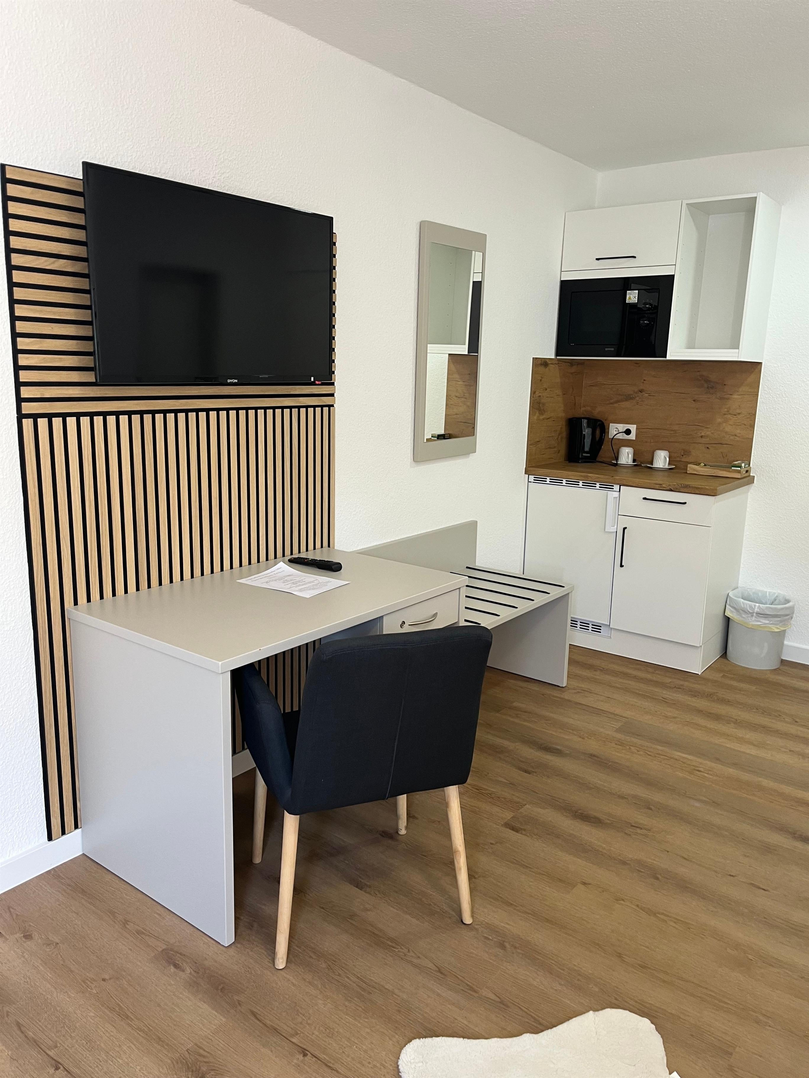 Das Apartment verfügt über eine Kochnische und einen Parkplatz direkt am Hotel.