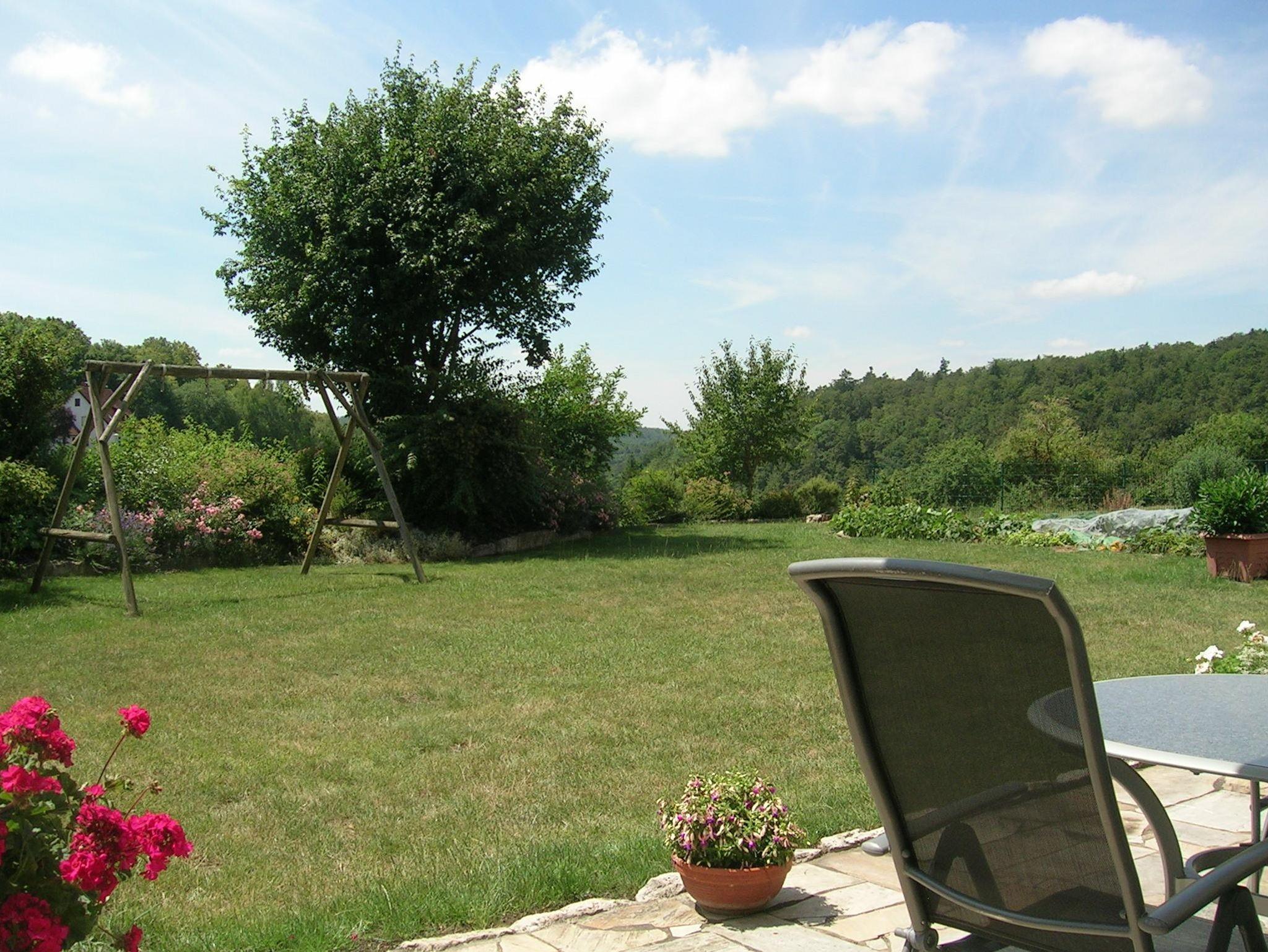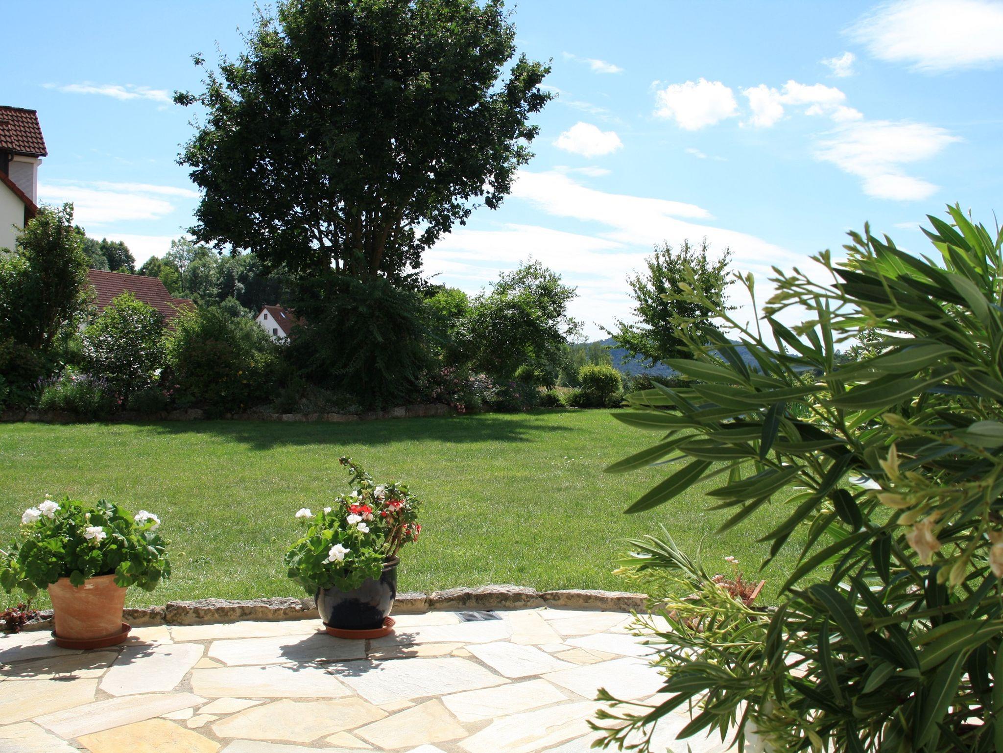Die überdachte, sonnige Terrasse mit großem Garten, Gartenmöbeln und Grillmöglichkeit bietet einen weitem Blick ins Tal. Für mitgebrachte Räder gibt es eine abschließbare Fahrradgarage.