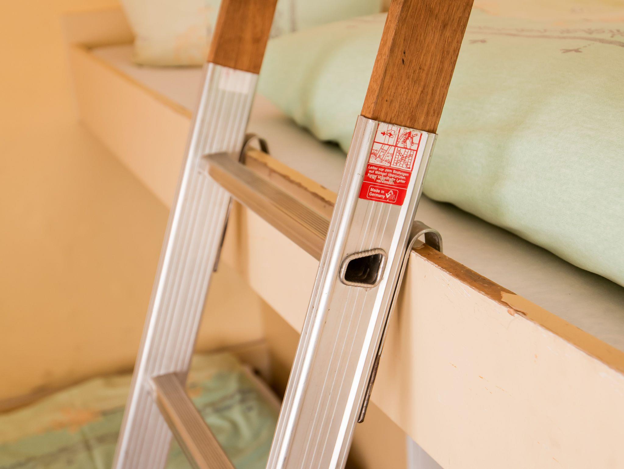Es befinden sich zwei Einzelbetten, ein Kleiderschrank und eine Sitzgelegenheit im Abteil, kein WC.