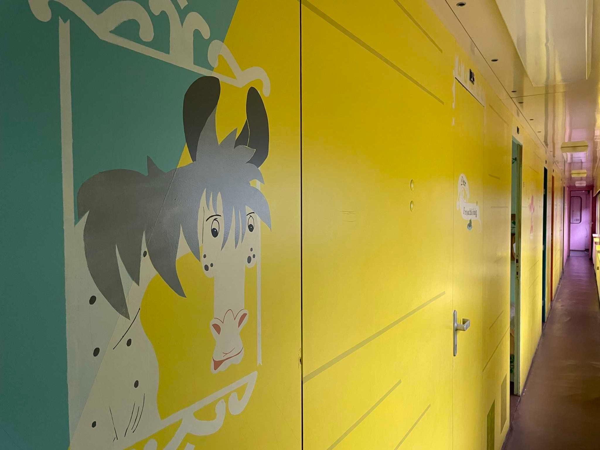 Der Schlafwagon ist ein Kunstwerk, bemalt mit den Fantasien von Pippi Langstrumpf und nordischen Märchensagen.