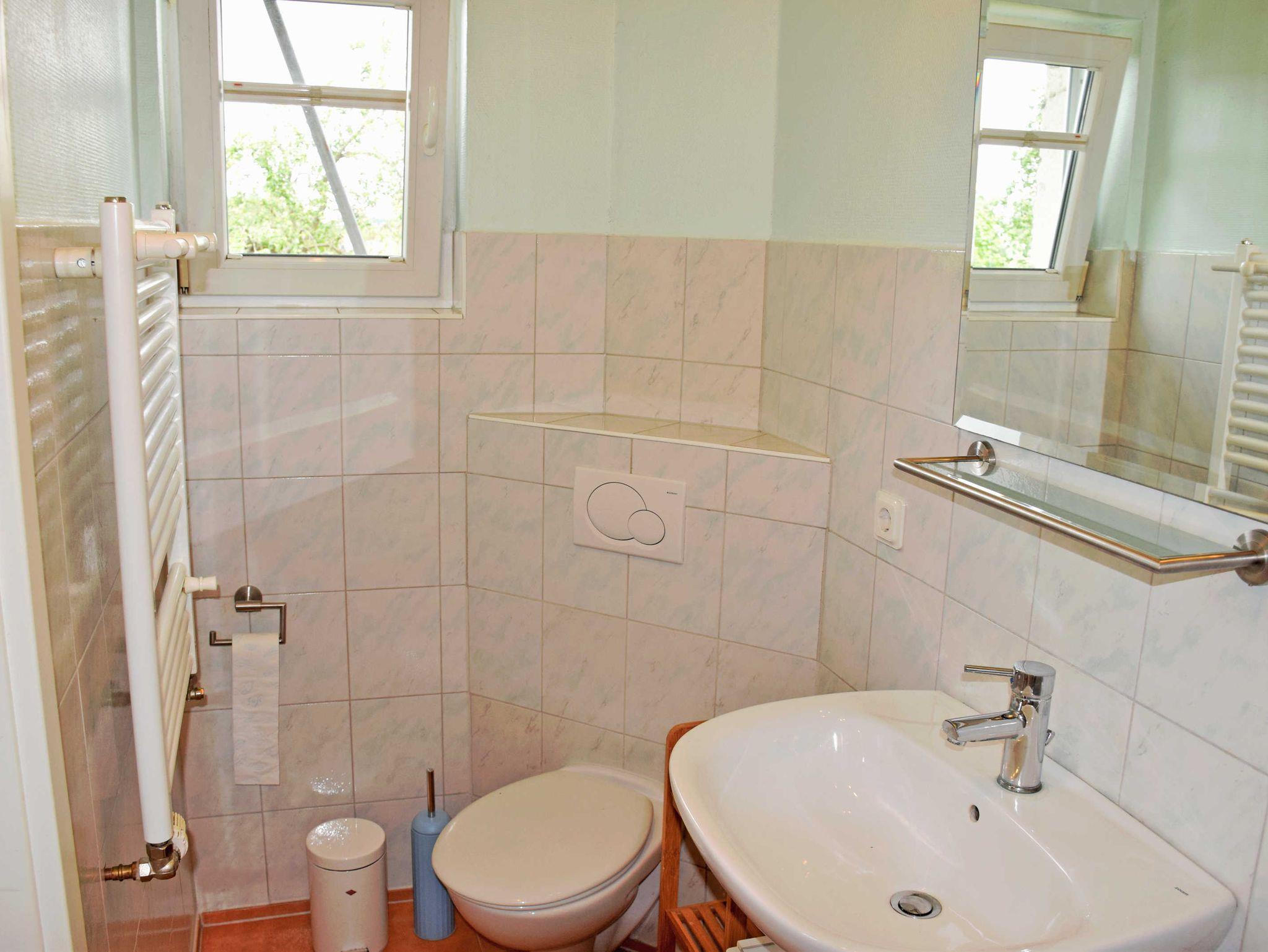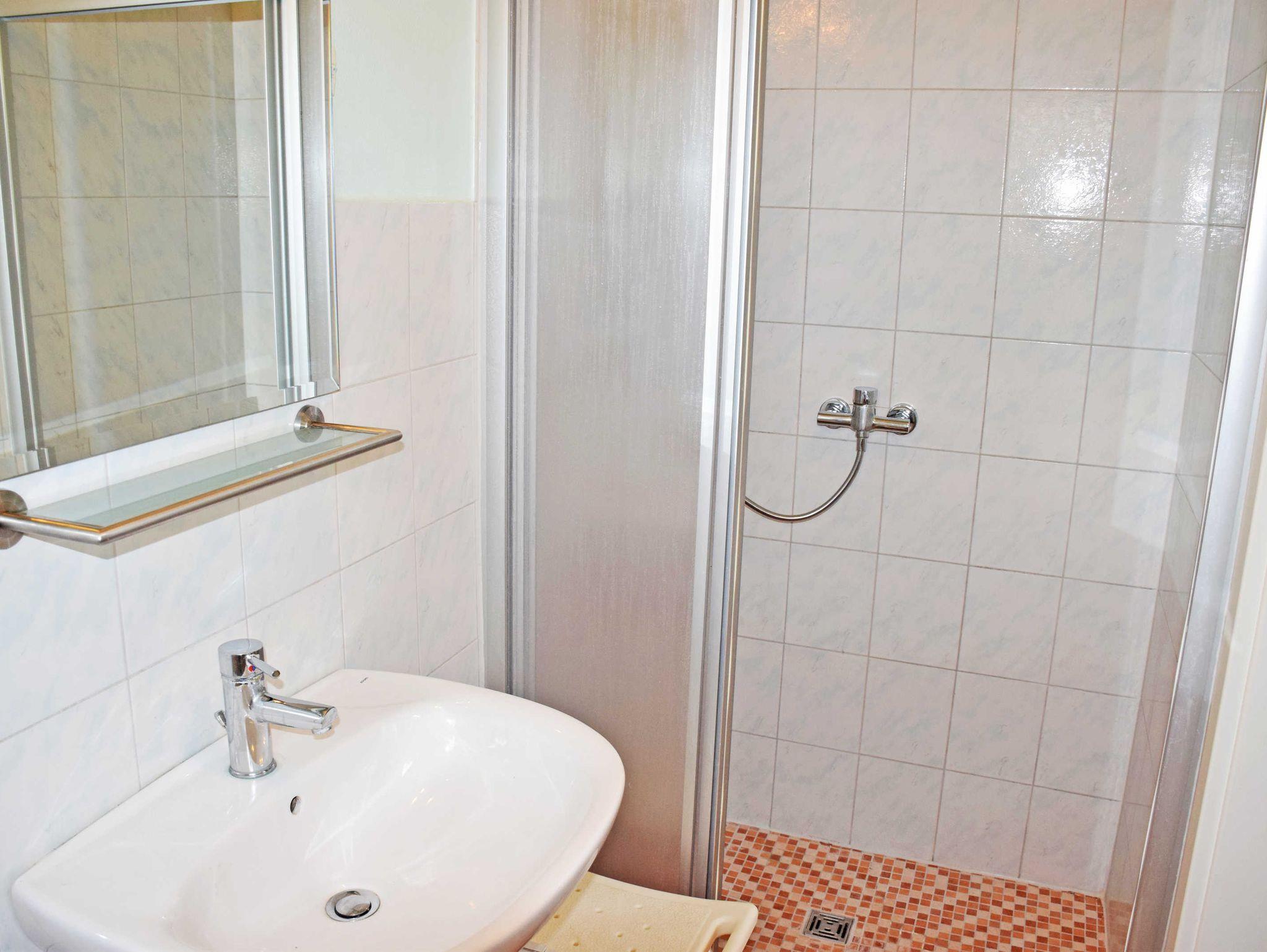 Im Schlafbereich befindet sich ein bequemes Doppelbett mit Nachttischen und Leselampen. Ein kleines Kinderreisebett und ein Hochstuhl können auf Wunsch kostenlos bereit gestellt werden. Für einen 3. Gast wird als Aufbettung ein Reisebett in der Wohnung zusätzlich aufgestellt. Bettwäsche sowie Handtücher können Sie gerne gegen Aufpreis mit hinzubuchen oder selbst mitbringen. Das Bad ist mit Dusche, WC und Waschtisch ausgestattet und verfügt über Tageslicht. Zum Appartement gehört auch eine Sitzecke mit Gartenmöbeln.