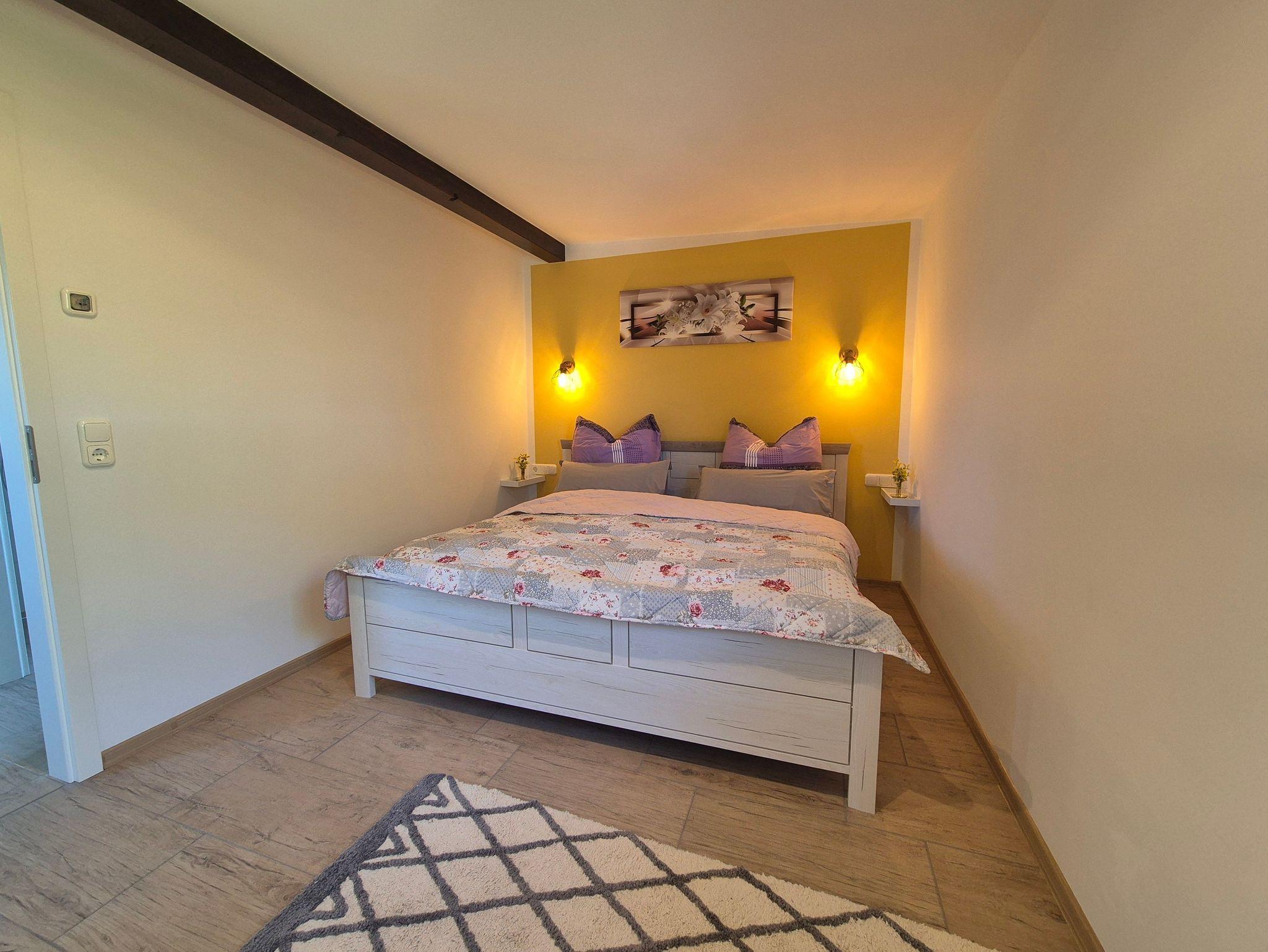 Das Tageslicht-Badezimmer verfügt über eine ebenerdige Dusche, ein WC und einen Waschtisch. Im Schlafzimmer erwartet Sie ein komfortables Doppelbett und ein geräumiger Kleiderschrank. Zudem gibt es ausreichend Platz, um ein Kinderbett aufzustellen.