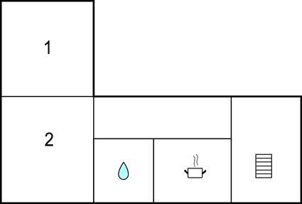 Soveværelse (nr. 1) - 1 Soveplads. (Enkeltseng(e)). 2 Sovepladser. (Dobbeltseng(e)).