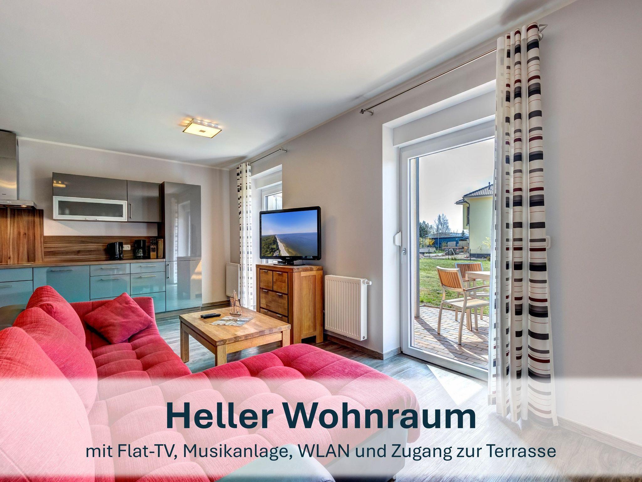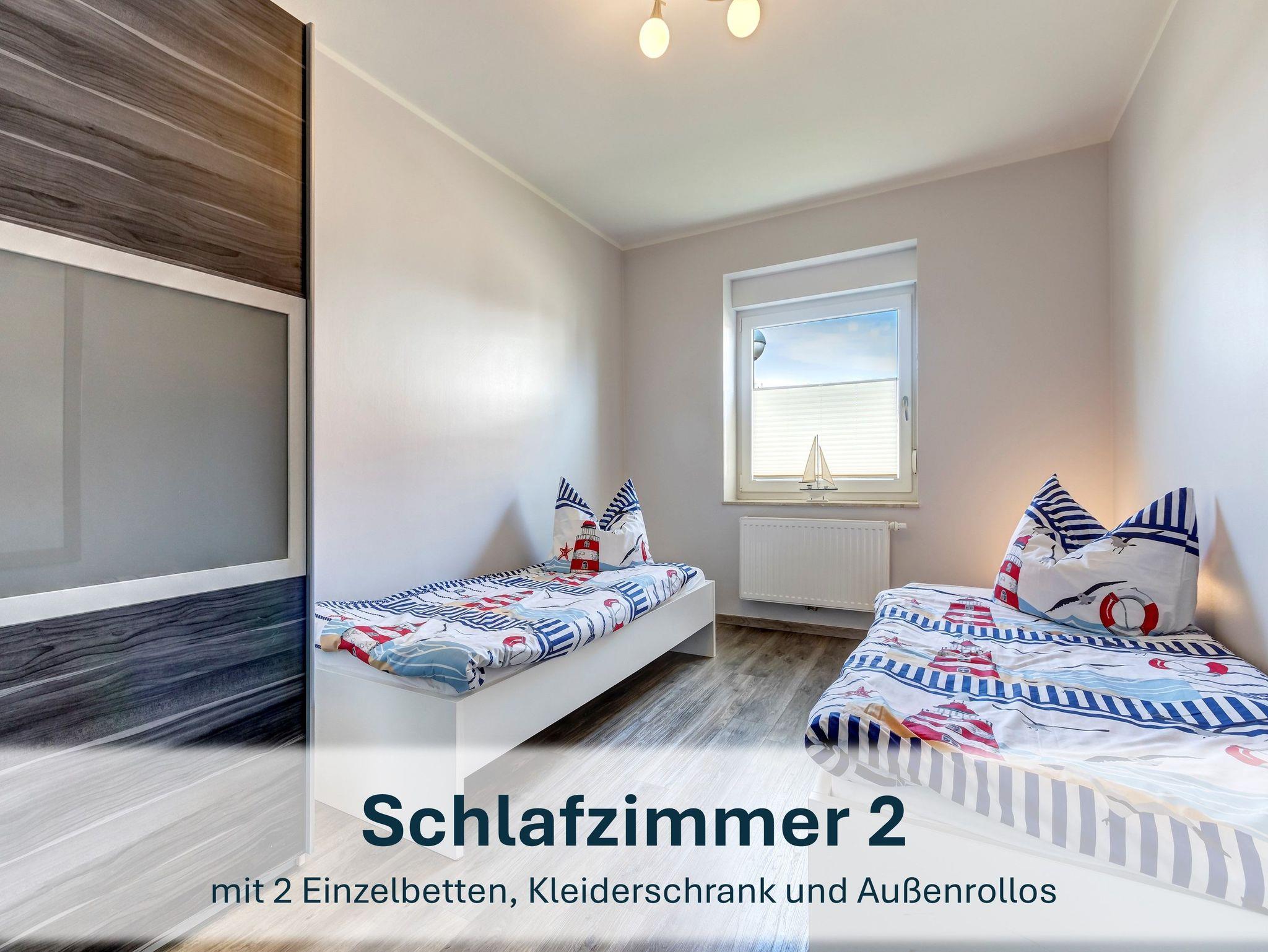 Die ebenerdig gelegene Ferienwohnung Nr. 1 verfügt über einen separaten, barrierefreien Eingang und ist auch für Rollstuhlfahrer geeignet. Sie bietet zwei Schlafzimmer ? eines mit Doppelbett, eines mit zwei Einzelbetten ? sowie ein modernes Badezimmer mit ebenerdiger Dusche. Der offene Wohnbereich mit gemütlicher Sofaecke und angrenzender, voll ausgestatteter Küche (inkl. Spülmaschine, Ceranherd, Backofen, Kühlschrank mit Gefrierfach, Mikrowelle, Kaffeemaschine, Wasserkocher und Toaster) lädt zum Wohlfühlen ein. WLAN, ein Parkplatz sowie ein abschließbarer Fahrradschuppen stehen zur Verfügung. Ein Gemeinschaftsraum befindet sich im Erdgeschoss des Haupthauses. Wäschepakete, ein Kinderreisebett mit passendem Wäschepaket sowie ein Hochstuhl können kostenpflichtig dazugebucht werden. Die Endreinigung umfasst ein Geschirrtuch und einen Duschvorleger. Die Kaution ist mit der Restzahlung zu überweisen.