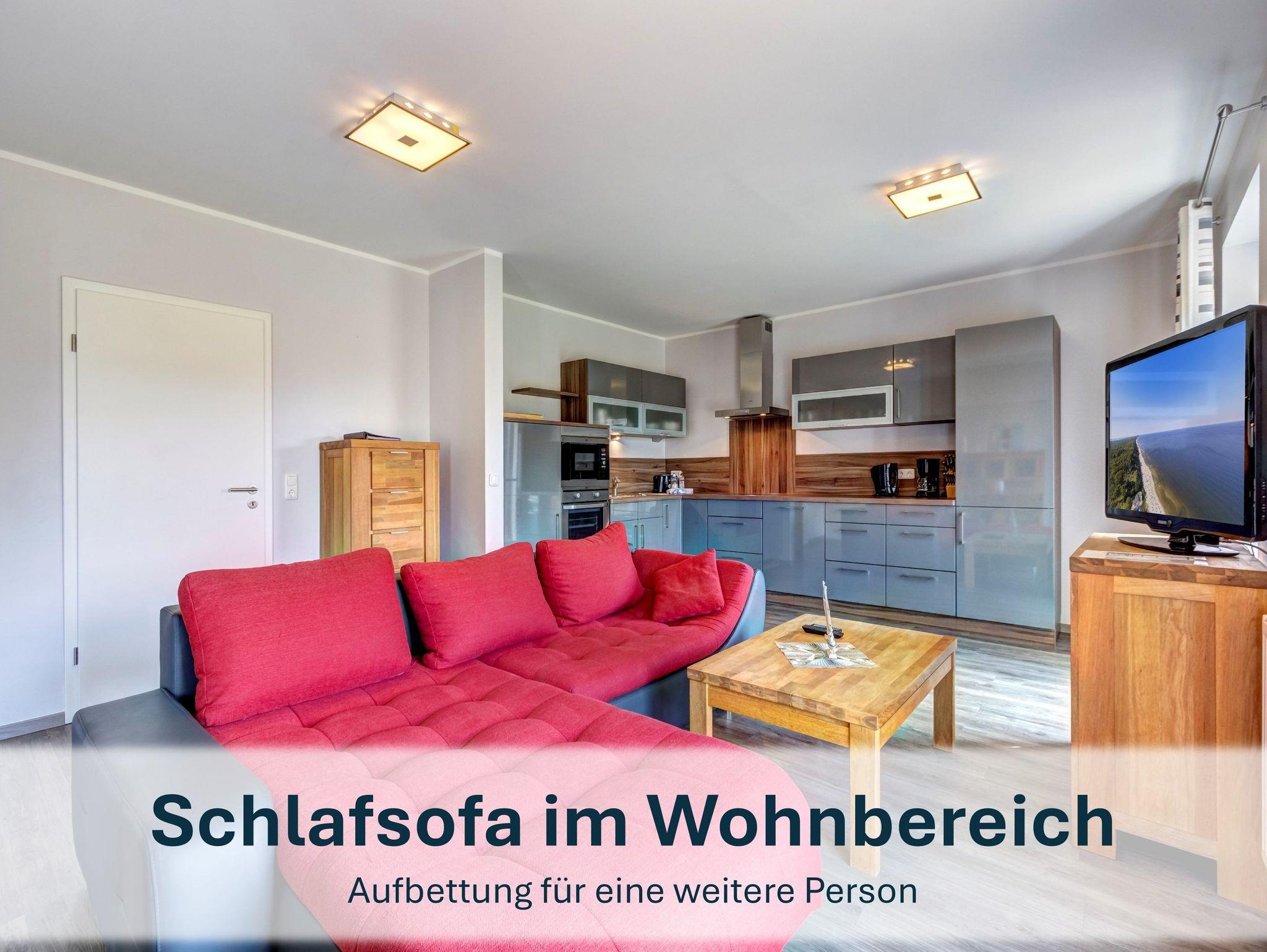 Zwei gemütliche Schlafzimmer ? eines mit Doppelbett, das andere mit zwei Einzelbetten ? sorgen für erholsame Nächte. Im Wohnzimmer mit Schlafcouch findet eine weitere Person bequem Platz. Die offene voll ausgestattete Küche mit angrenzendem Essbereich lädt zu gemeinsamen Mahlzeiten ein und bietet direkten Zugang zur möblierten Terrasse ? perfekt für entspannte Stunden im Freien.