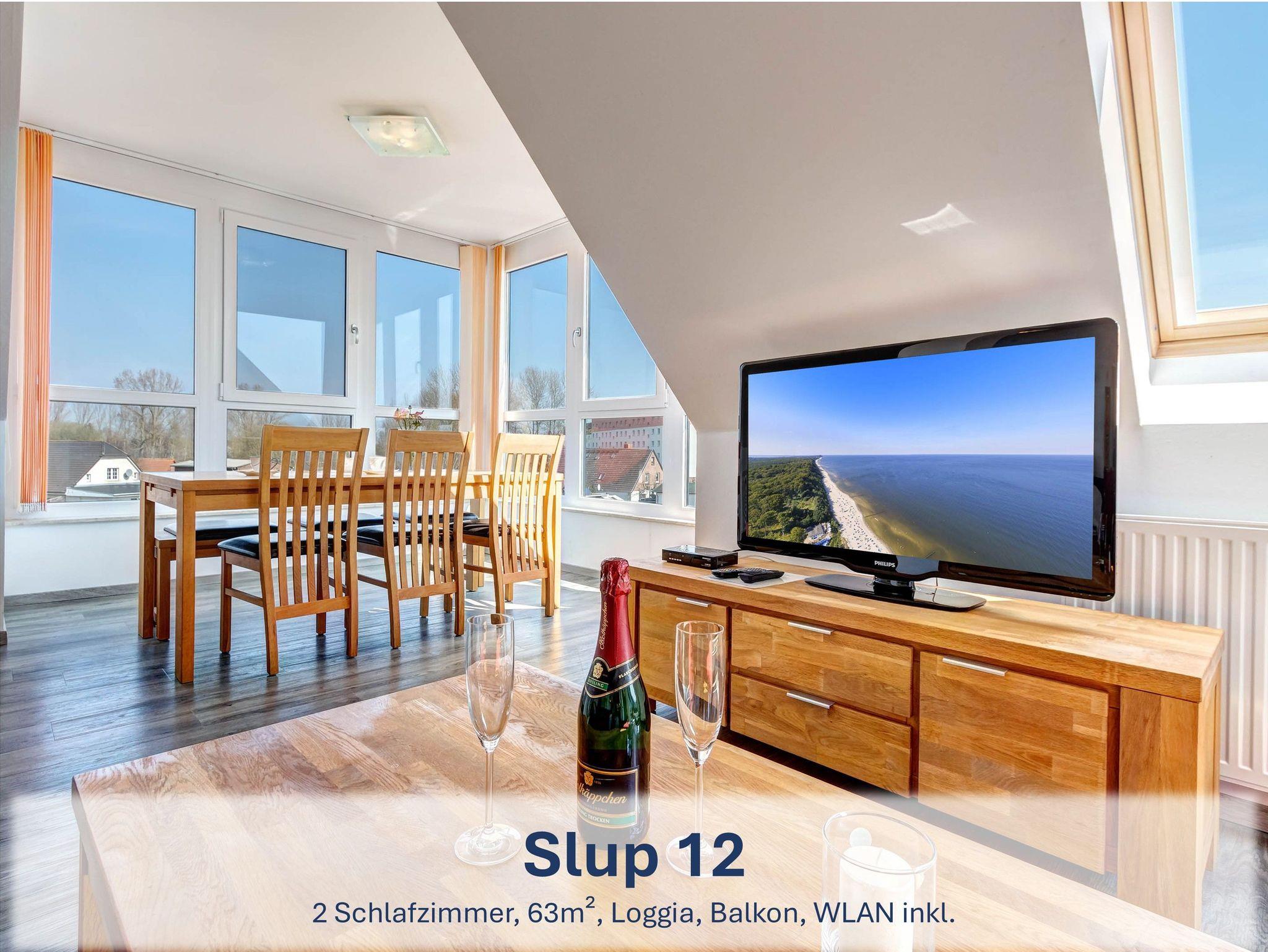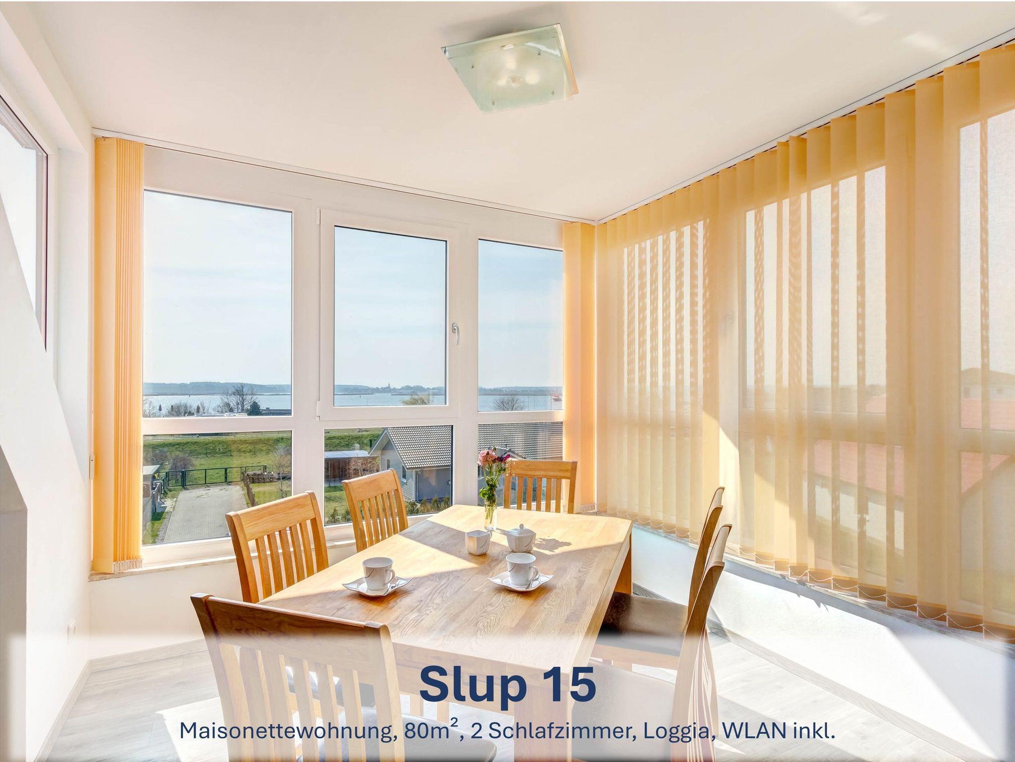 Die Wohneinheit ?Slup? besteht aus zwei verbundenen Maisonettewohnungen und bietet mit rund 142m² viel Platz für bis zu 10 Erwachsene und 2 Kleinkinder. Vier Schlafzimmer, zwei moderne Bäder, zwei voll ausgestattete Küchen und zwei Wohnbereiche mit Schlafcouch bieten beste Voraussetzungen für einen komfortablen Urlaub mit Familie oder Freunden. Drei Loggien und ein Balkon eröffnen schöne Ausblicke auf den Seglerhafen. WLAN, zwei Parkplätze und abschließbare Schuppen sind inklusive. Die Kaution wird mit der Restzahlung fällig und nach ordnungsgemäßer Rückgabe zurückerstattet.
