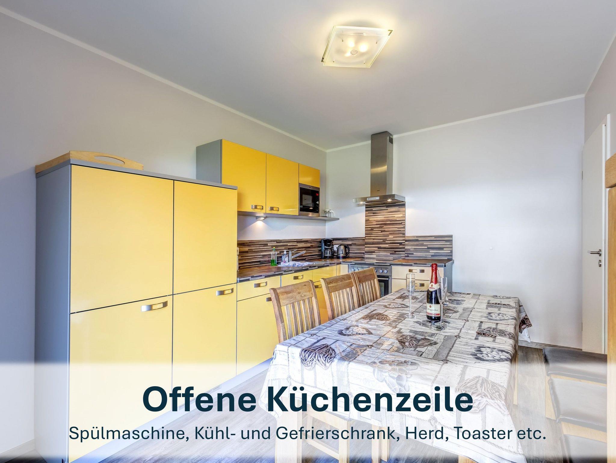 Die moderne Küche bietet alles, was Sie für die Selbstverpflegung benötigen ? inklusive Spülmaschine, Cerankochfeld, Backofen, Mikrowelle, Kühlschrank mit Gefrierfach, Toaster, Kaffeemaschine und Wasserkocher. Der lichtdurchflutete Wohnbereich lädt zum Verweilen ein, während Sie auf der sonnigen Terrasse herrlich entspannen können.