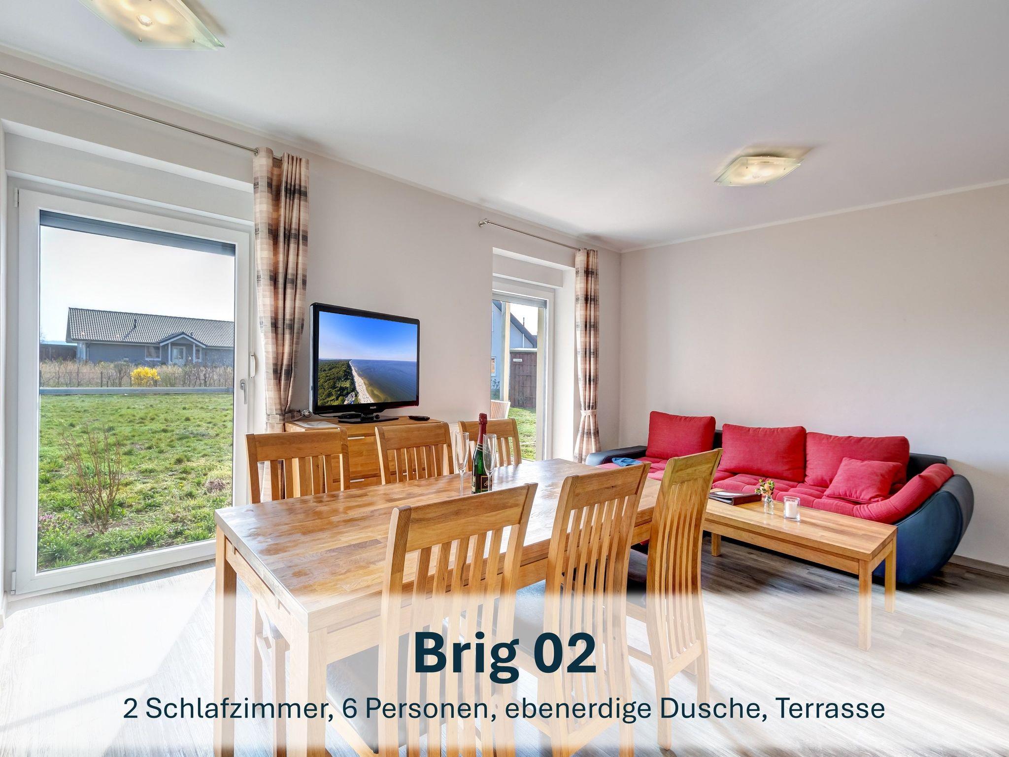 Im Erdgeschoss begrüßt Sie die Wohnung „Brig 02“ mit 85m² Wohnfläche. Zwei gemütliche Schlafzimmer ? eines mit Doppelbett, eines mit zwei Einzelbetten ? sowie ein helles Wohnzimmer mit Schlafcouch bieten Rückzug und Gemeinschaft in einem. Die voll ausgestattete Küche und die möblierte Sonnenterrasse machen den Aufenthalt besonders komfortabel.