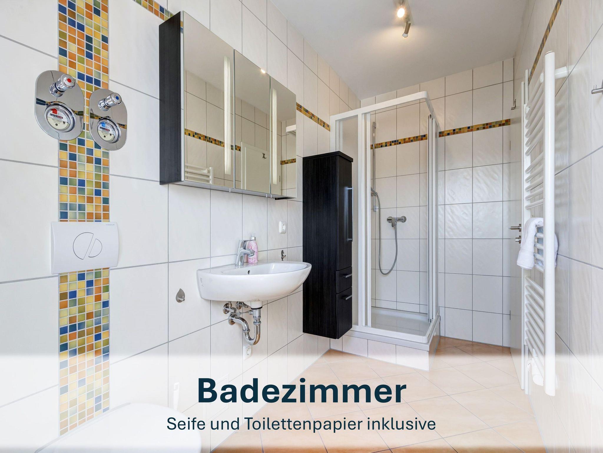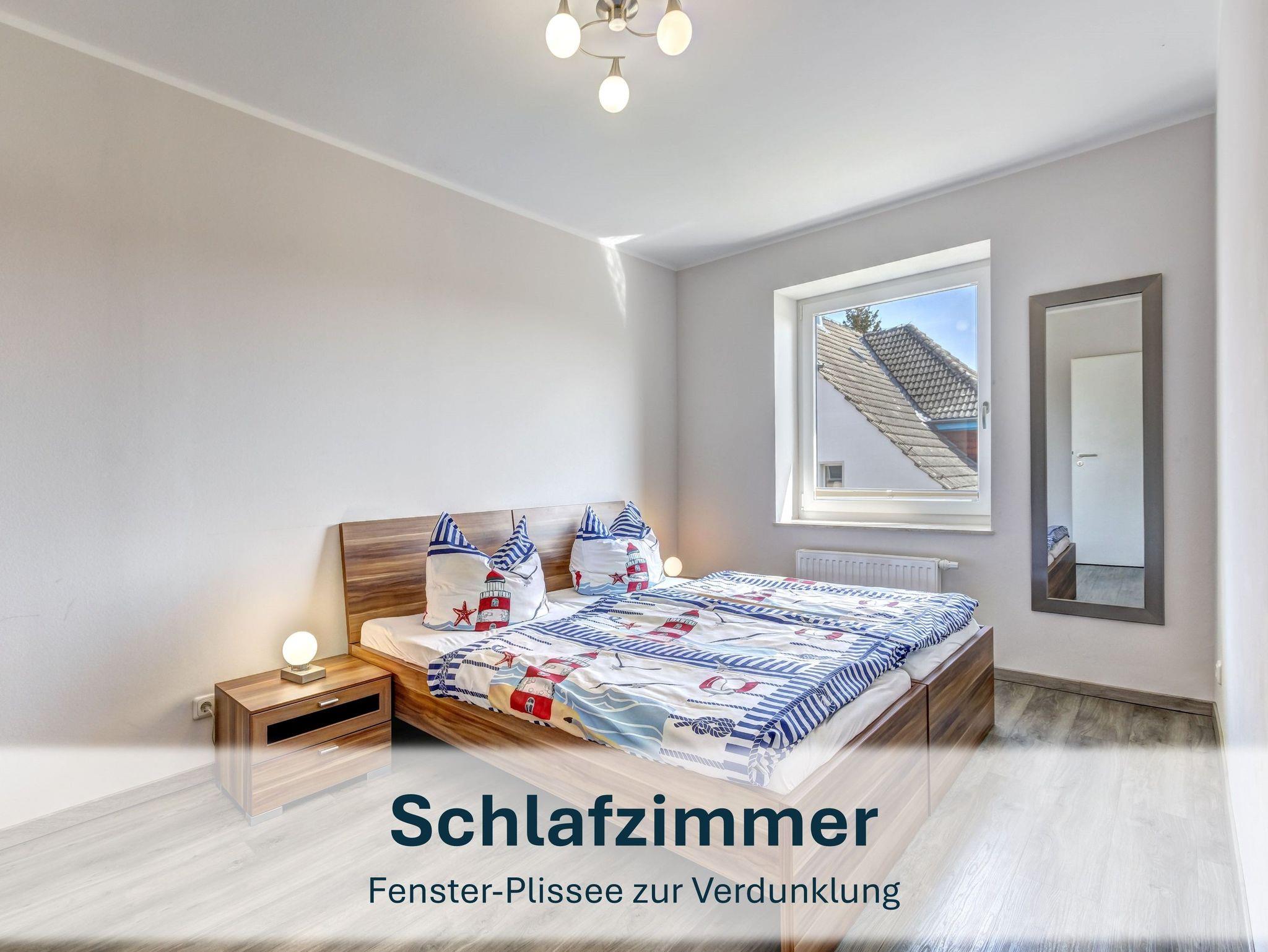Die 61m² große Maisonettewohnung „Schoner 13“ erstreckt sich über das Ober- und Dachgeschoss des Hauses und eignet sich ideal für bis zu 3 Personen und ein Kleinkind bis 3 Jahre. Im unteren Bereich befinden sich das Schlafzimmer mit Doppelbett und Kleiderschrank sowie das helle Badezimmer mit Fenster und Dusche.