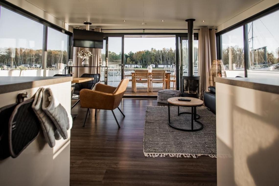 Das Hausboot "freiZeit" ist ein floating 44. Es besitzt 2 Schlafzimmer mit je einem Doppelbett. Das Badezimmer ist mit einer Dusche ausgestattet und einem separaten WC. Der Wohn- und Essbereich ist ein stilvoll eingerichteter Raum mit einer dreiseitigen Glasfront. Der Kamin rundet das einmalige Erlebnis ab.