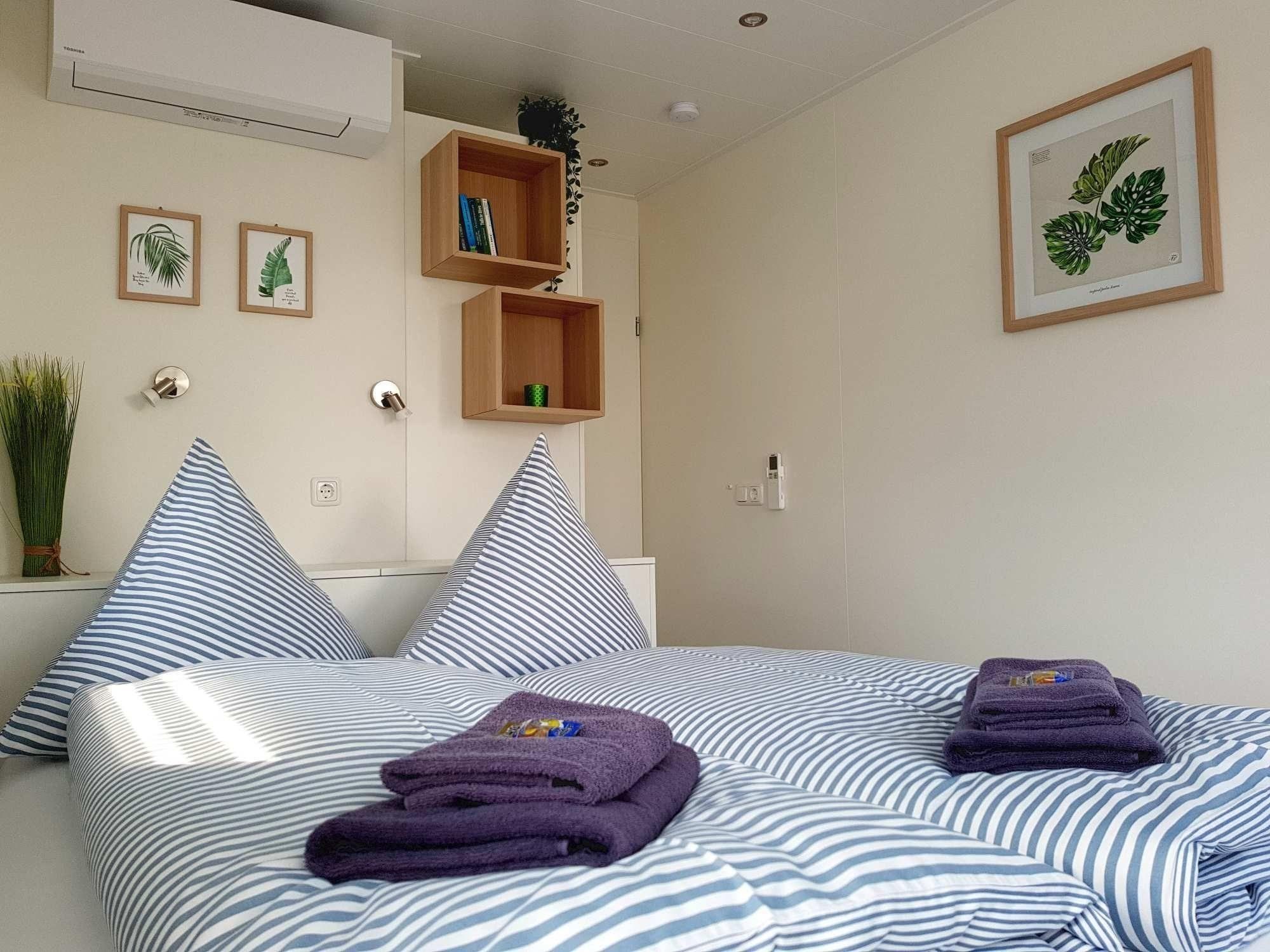 Das Hausboot "Marama" ist ein floating 44. Es besitzt 2 Schlafzimmer mit je einem Doppelbett. Das Badezimmer ist mit einer Dusche ausgestattet und einem separaten WC. Der Wohn- und Essbereich ist ein stilvoll eingerichteter Raum mit einer dreiseitigen Glasfront. Der Kamin rundet das einmalige Erlebnis ab.