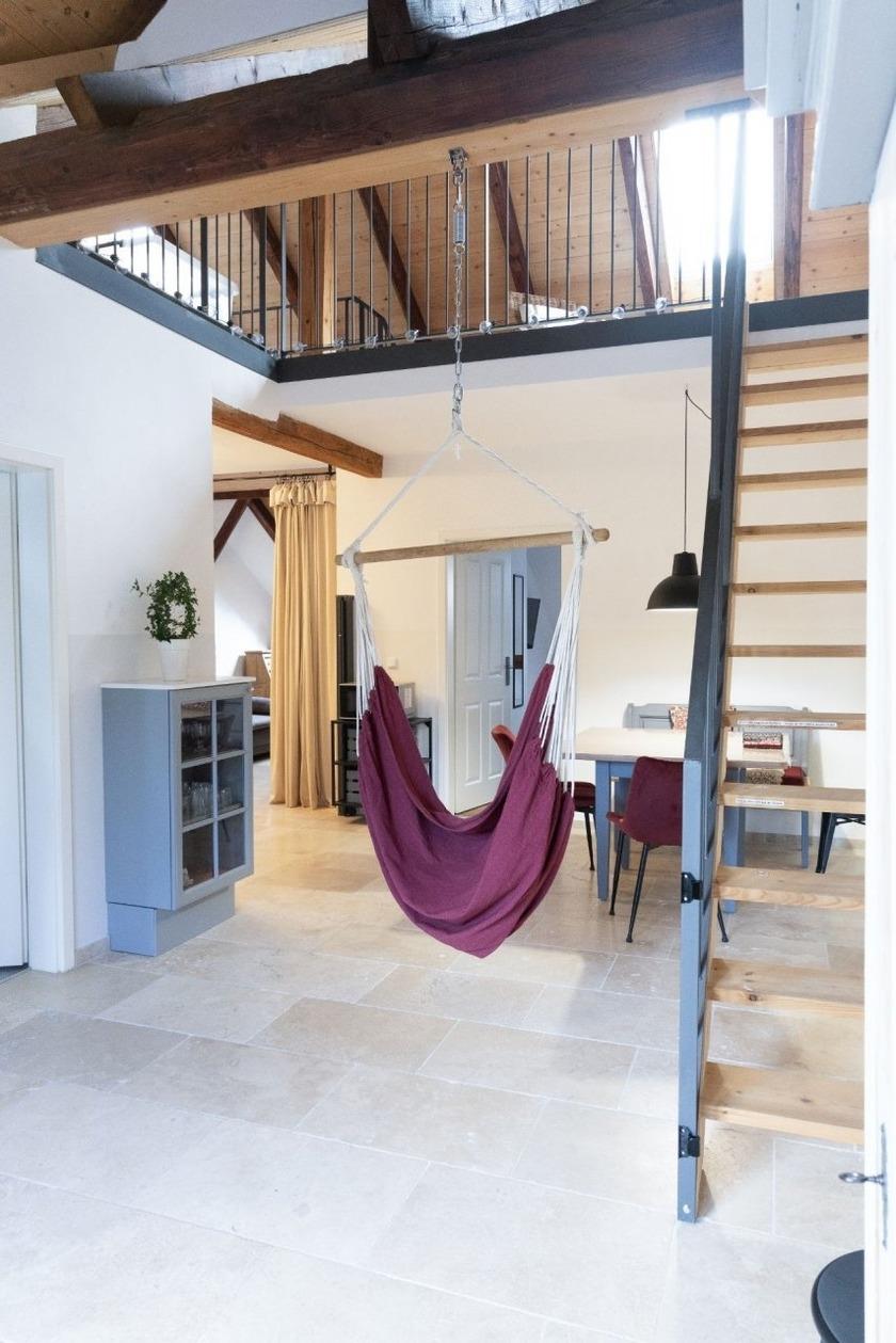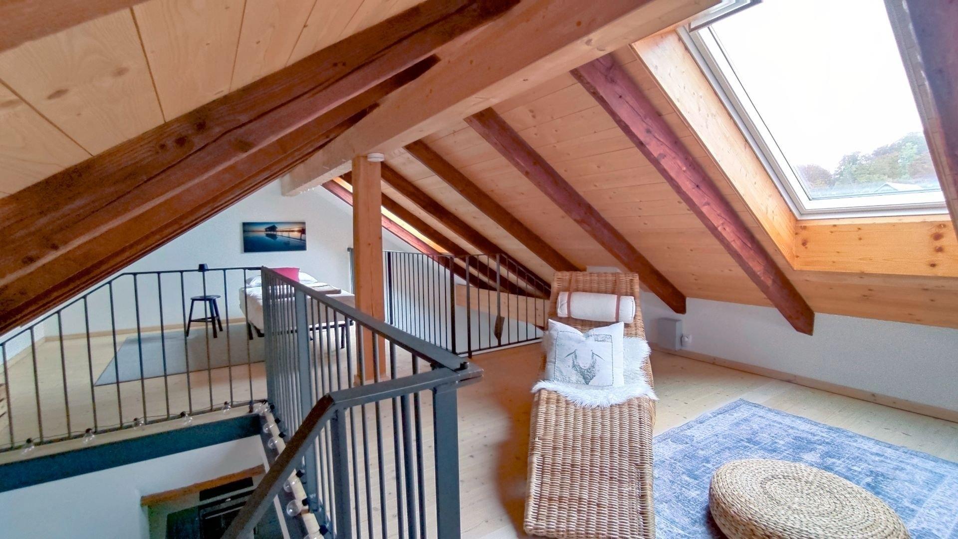 - eine Galerie die über eine steile Treppe erreichbar ist