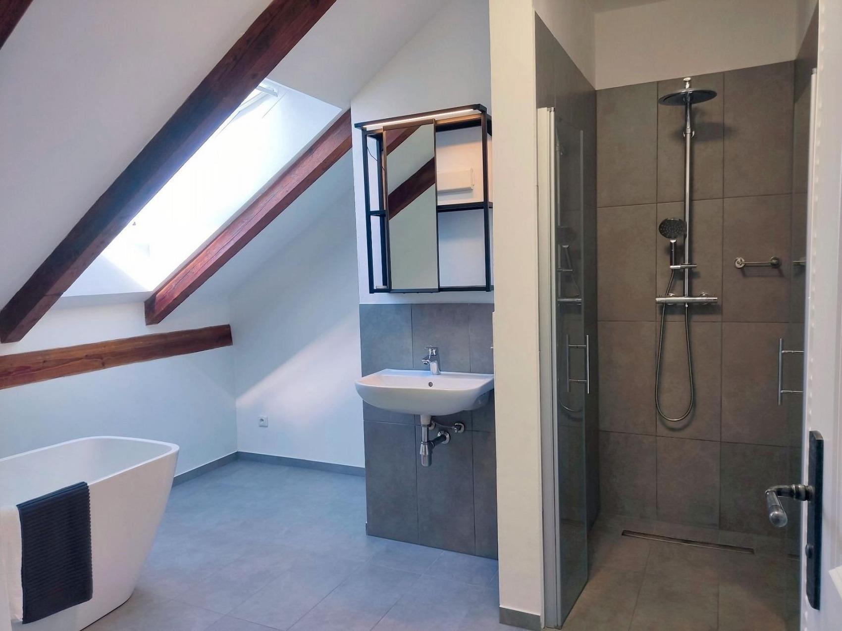 - Badezimmer mit geräumiger Dusche