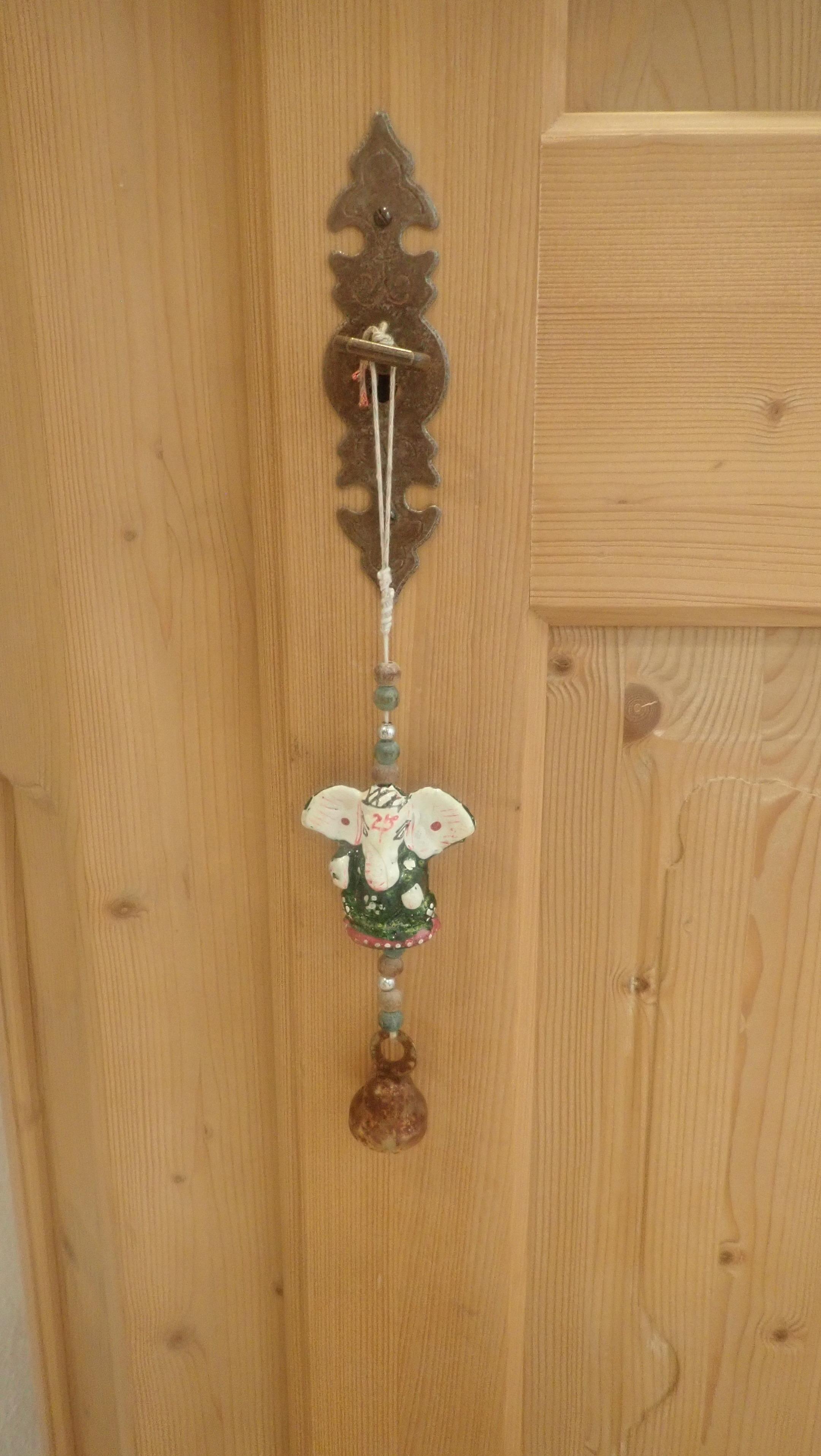 Das Schönste in dieser Wohnung aber ist das Bad: Sehr geräumig, mit einer großen ebenerdigen Dusche, versehen mit Haltegriffen auf beiden Seiten und einem Duschhocker, einer erhöhten Toilette, ebenfalls mit Haltegriff, einem Bambusstuhl und einem Waschtisch mit Schubladen, zusätzlich ein rollbares Regal für Ihre persönlichen Utensilien. Selbstverständlich gibt es eine Lüftung und ein hübsches Fenster mit gehäkelten Gardinen, das geöffnet werden kann. Sehr romantisch beleuchten am Abend versteckte Lichter die gewölbte Decke des ehemaligen Stalls!