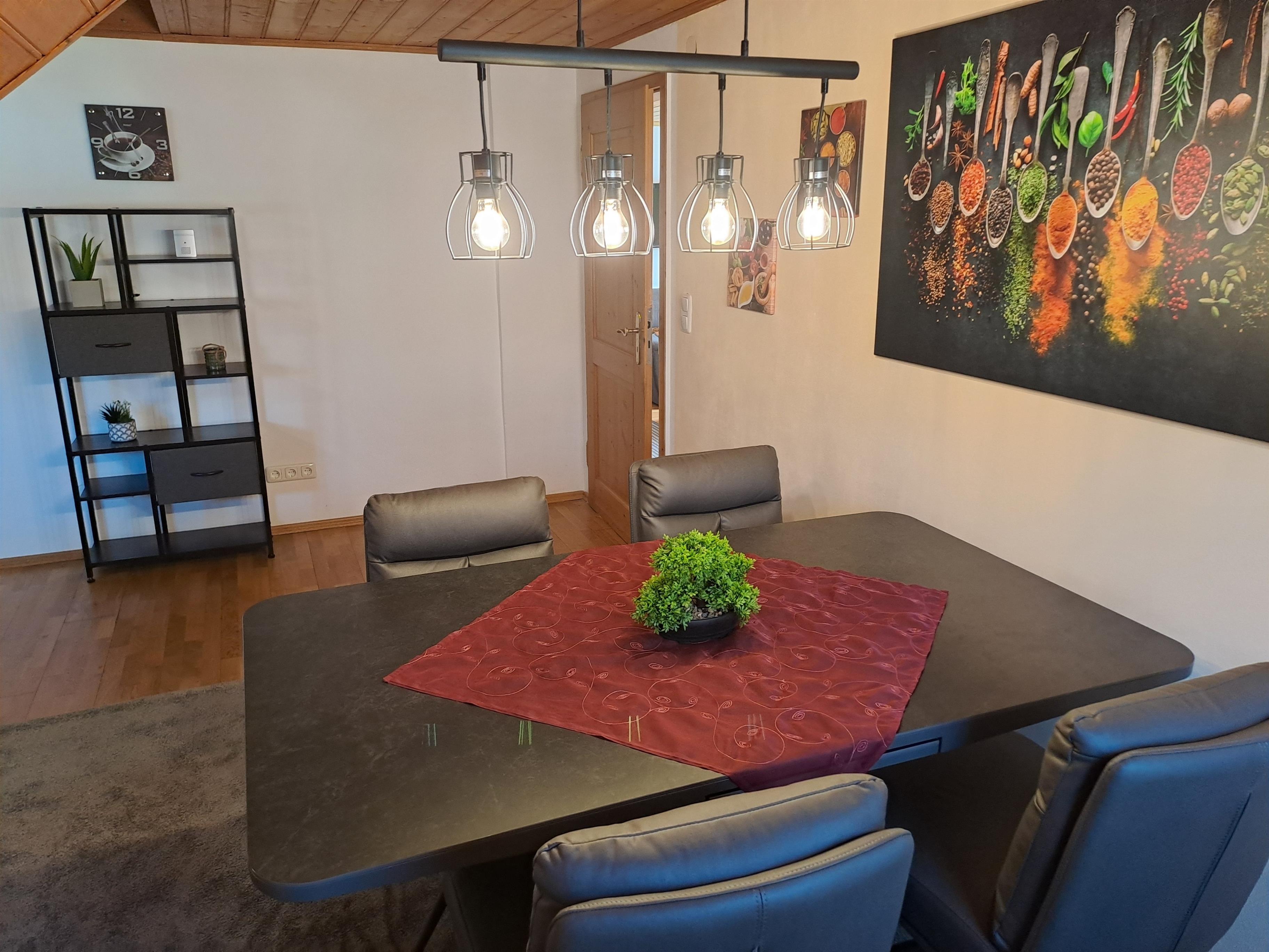 Genießen Sie ungestört Ihre Privatsphäre in der Ferienwohnung im 1. Stock unseres Hauses. Zugang über einen separaten Eingang. Zur Wohnung gehört ab Juni 2025 ein eigener Teil im Garten mit Terrasse, Sichtschutz, gemütlicher Sitzgruppe und großem Sonnenschirm. Die behagliche 3-Zimmer-Wohnung bietet eine große Wohnküche mit stabilem Keramiktisch und vier bequemen Drehstühlen. Die Küche ist mit allen nötigen Küchengeräten ausgestattet. Das offene Wohnzimmer mit Flachbild-TV und 2 Sofas lädt zum Relaxen ein. Sie werden sich dort sofort wohlfühlen. Alle Fußböden bestehen aus Echtholz-Eichenparkett. Beide Schlafzimmer sind mit großen, bequemen Doppelbetten ausgestattet und verdunkelbar. Das WC ist separat von der Dusche untergebracht.