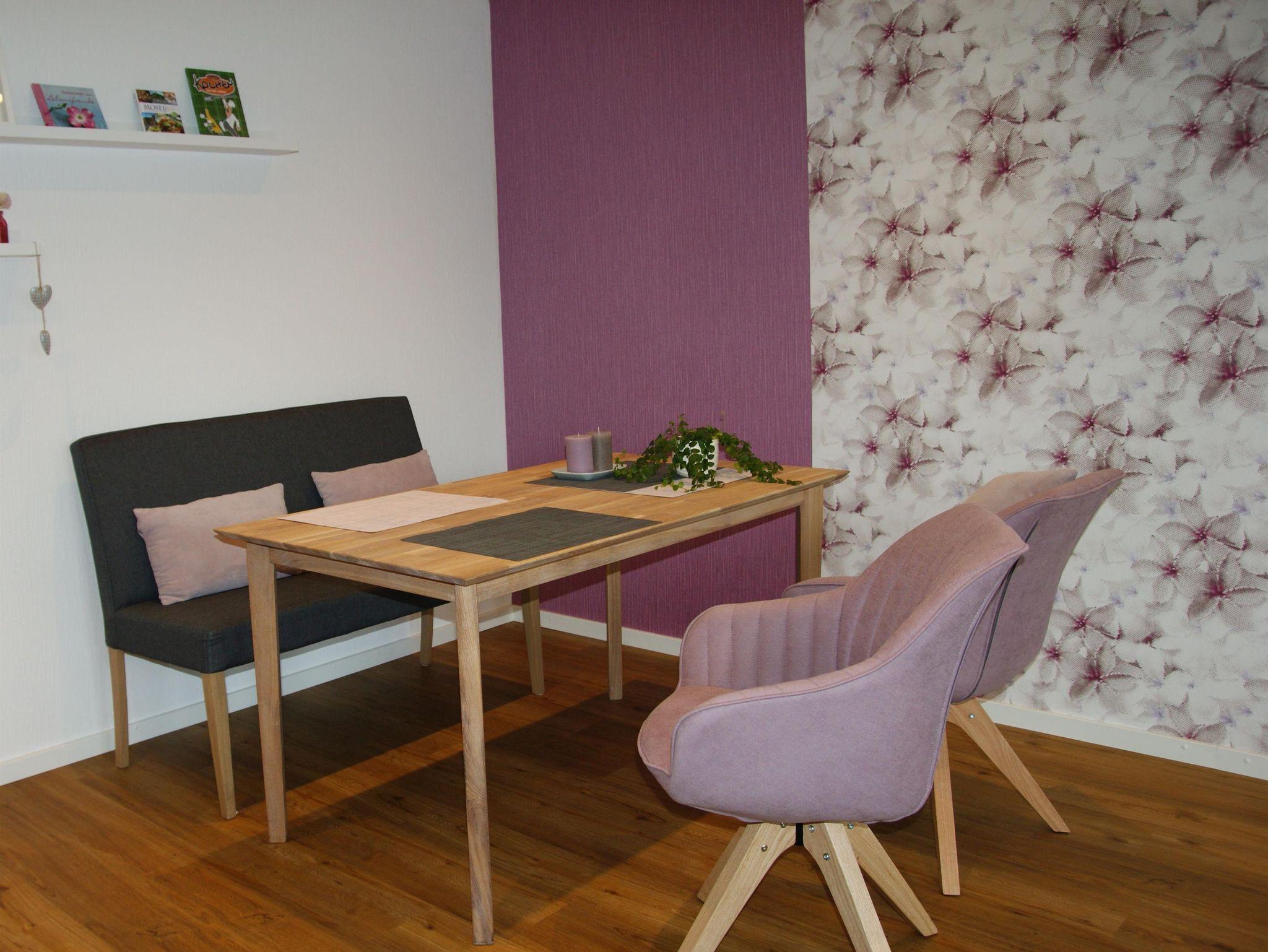 Die moderne Ferienwohnung liegt am Ortsrand von Pellingen. Sie besteht aus einem großen, lichtdurchfluteten Wohn-/Esszimmer mit integrierter Küche und einem gemütlichen Schlafzimmer mit angrenzendem Badezimmer. Die kleine Terrasse lädt zum Verweilen ein.