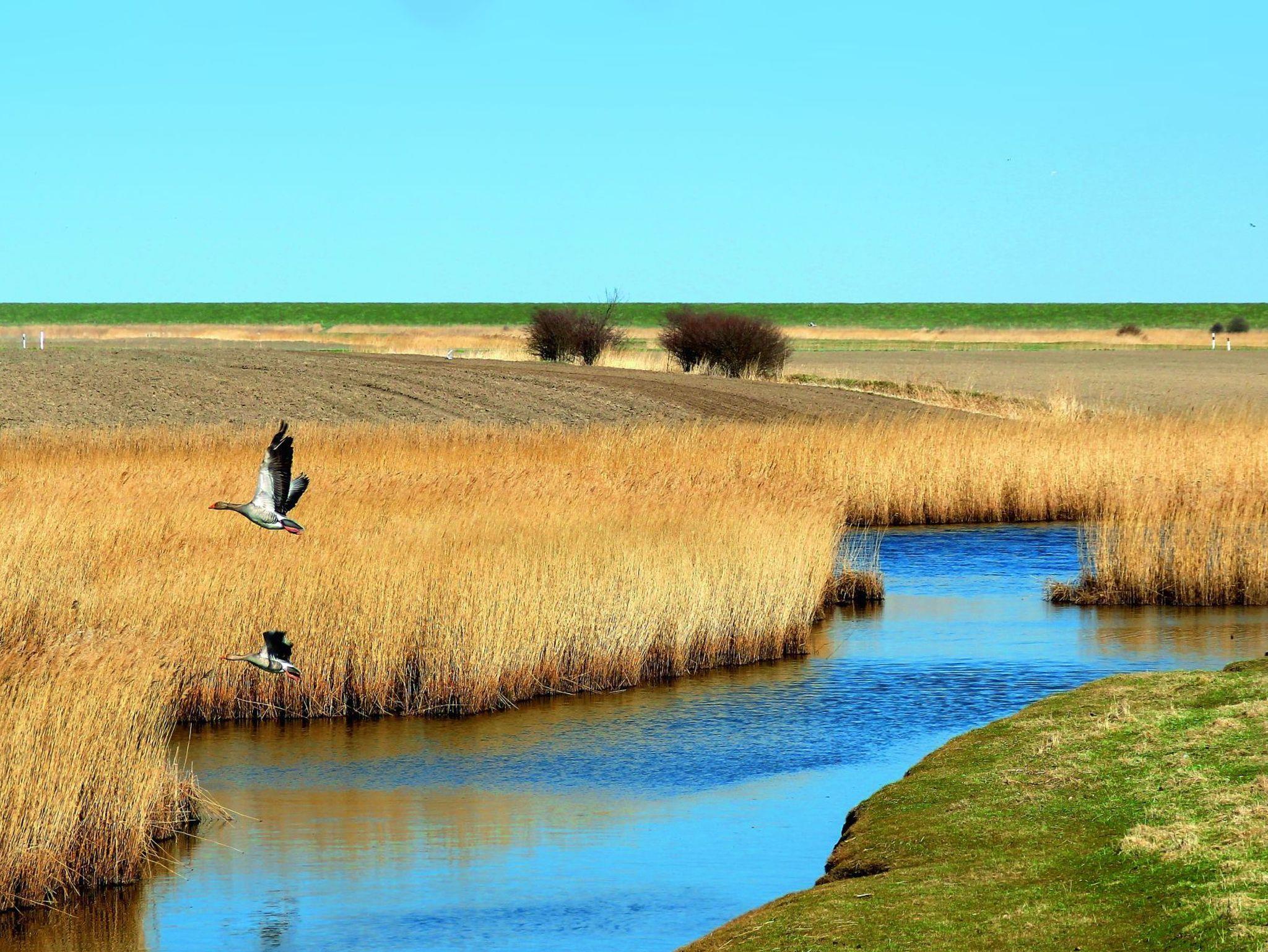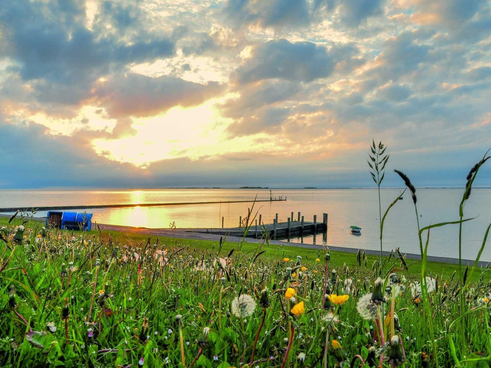 Ihre Mahlzeiten können Sie ganz in Ruhe auf einer der großen Terrassenflächen (teilweise überdacht) einnehmen. Ein Terrassentisch und 6 Stühle sind dafür vorhanden. Zwei Liegen laden auf der Sonnenterrasse zum ausgiebigen Sonnenbaden ein. Der Garten bietet viel Erholungs- und Spielfläche. Auch in den kühleren Monaten ergänzen sich Natur und Haus perfekt. Machen Sie es sich nach ausgiebigen Deichwanderungen in frischer Meeresluft einfach mit einem guten Buch in der Sauna oder auf dem Sofa gemütlich oder geben Sie sich dem hin, was hier am besten funktioniert: dem gepflegten Nichtstun!