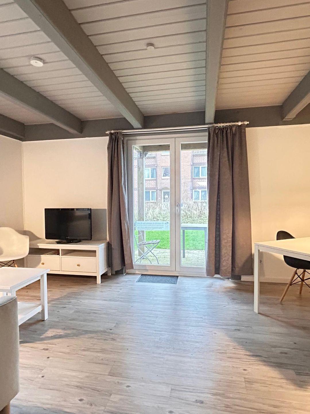 Der Wohnbereich lädt mit einem gemütlichen Sofa und einem Fernseher mit Satellitenanschluss zum Verweilen ein. Eine eigene Terrasse mit Gartenmöbeln ermöglicht entspannte Stunden an der frischen Luft.