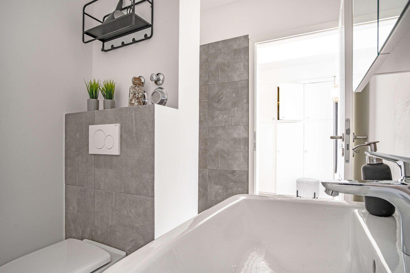 Die Badezimmerausstattung lässt keine Wünsche offen und bietet Ihnen eine bodengleich Dusche, einen Haartrockner sowie Pflegeprodukte wie Seife und Shampoo. Bei der Ausstattung wurde besonders auf Komfort geachtet: Ein Ganzkörperspiegel, Handtücher und Badetücher sind selbstverständlich vorhanden.