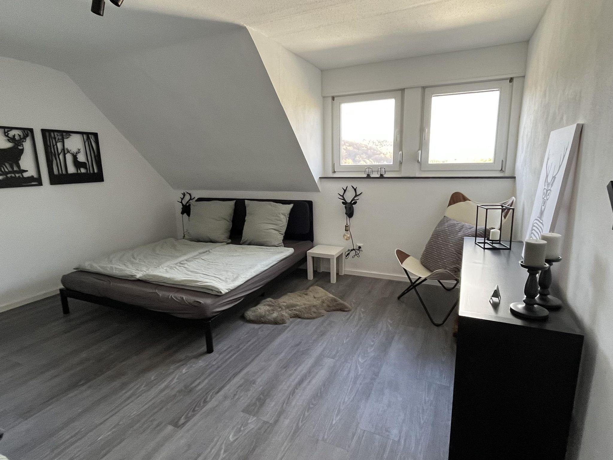 Wir heißen Sie herzlich willkommen in unserer Ferienwohnung Eifelglück, die sich im Dachgeschoss unseres Hauses befindet. Die Ferienwohnung ist geräumig und bietet Platz für bis zu 6 Personen. Sie verfügt über 2 Schlafzimmer, ein gemütliches Wohnzimmer, eine voll ausgestattete Küche und ein modernes Bad, in dem Sie sich nach einem aktiven Tag in der Eifel erholen können.